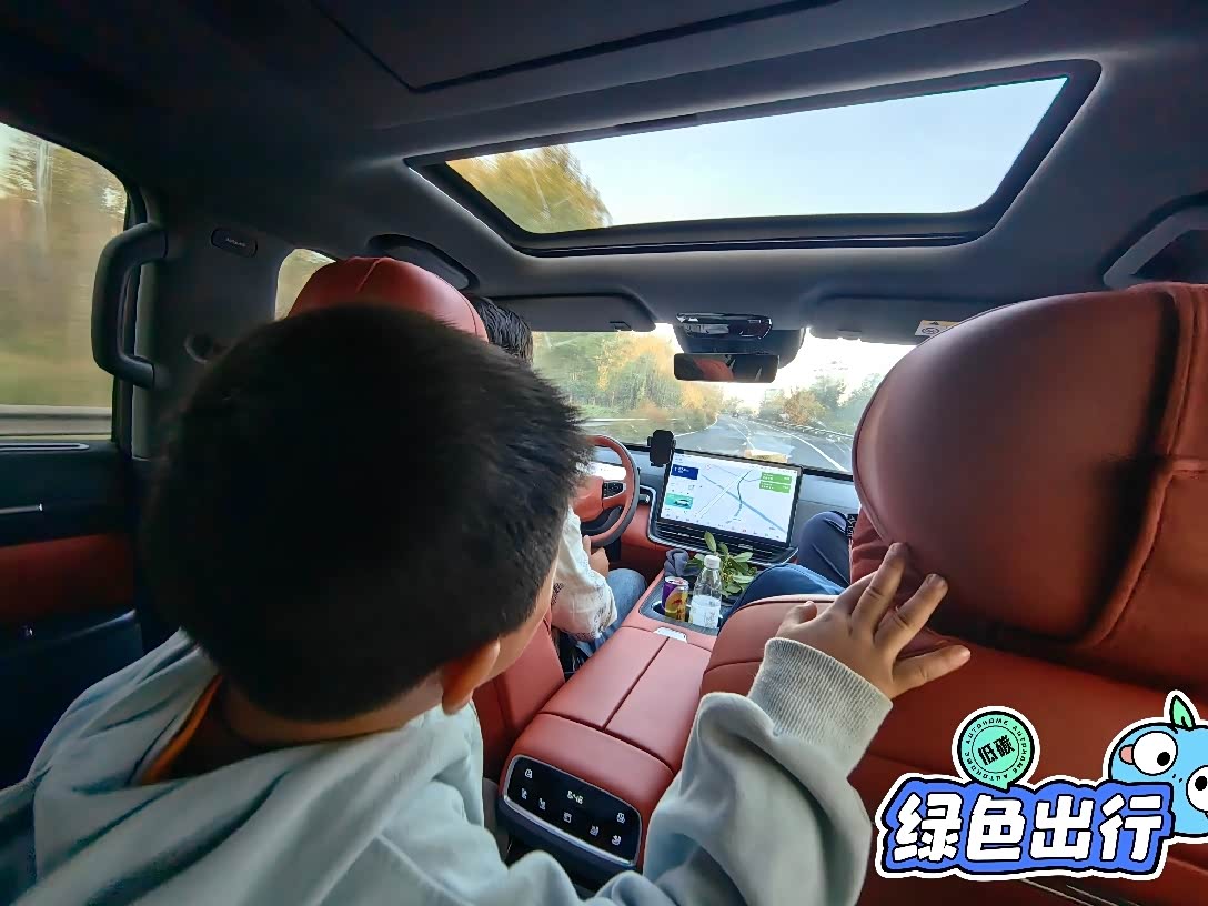配置上,最实用的是“哄娃三件套”:后排15.6英寸娱乐屏能播放《宝宝巴士》儿歌,孩子一上车就安静;冷暖冰箱夏天能冰可乐、冬天能温牛奶,再也不用带保温壶;LCC车道居中+ACC自适应巡航则帮了我大忙——上次回安徽,雨天开高速4小时,双手轻扶方向盘就能保持车道,脚不用一直踩电门,比以前开油车轻松太多。另外,双层夹胶玻璃+马牌静音轮胎的组合也很贴心,市区低速行驶时,孩子在后排说话不用刻意提高音量,配合20个WANOS音响,偶尔还能放首儿歌当“移动KTV”。