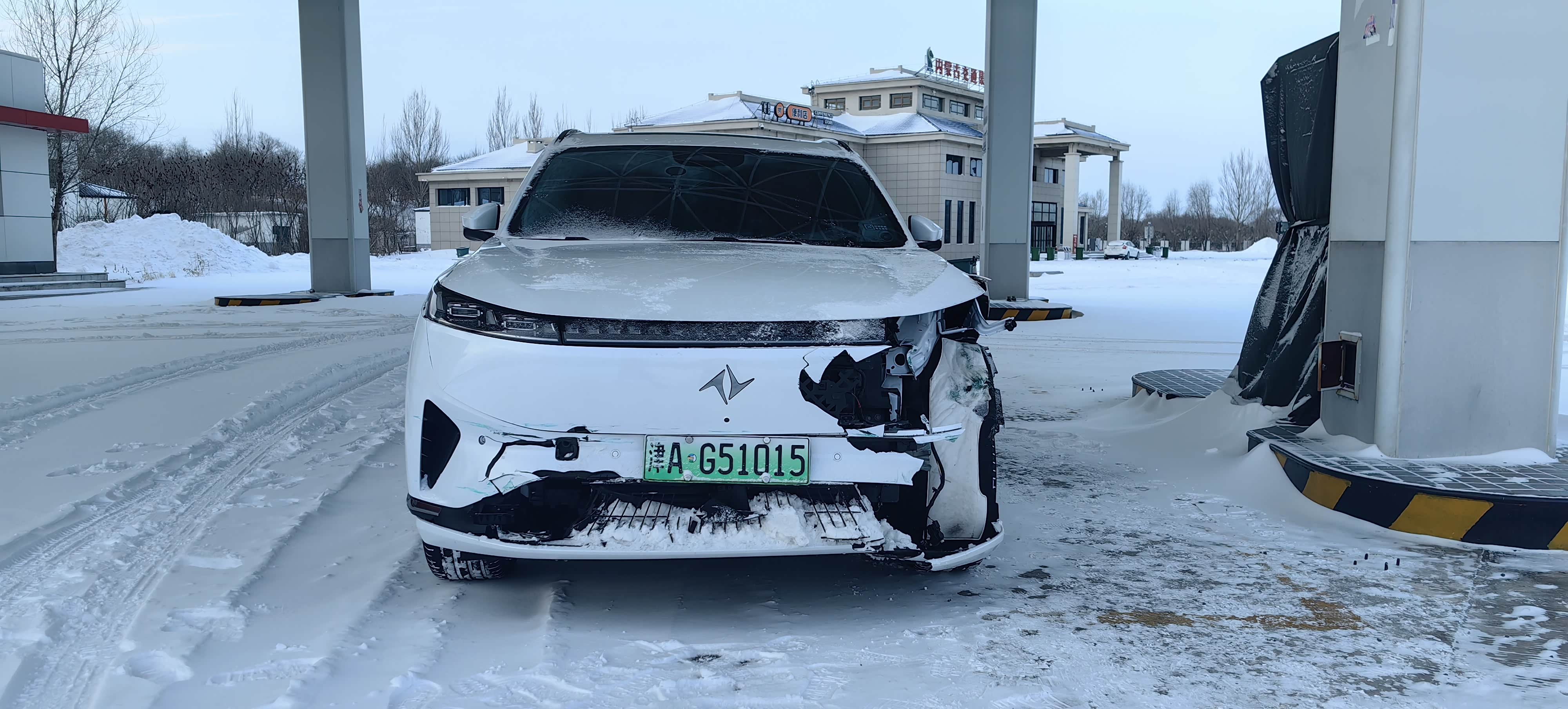 不幸的事 在距离终点最后的几十公里时 我的奕派发生侧滑碰撞到护栏,幸运的是人没事