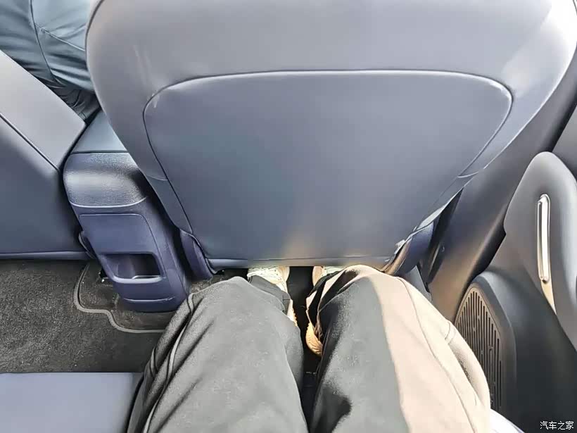 露怯的地方当然也有,比如说,前排座椅背面是没多少填充的,皮子松松垮垮的挂在那里,轻轻一碰就会缩进去,像极了早年间的出租车。主驾后面搞的小桌板只有短短的一小点,还内置了一个杯架,说实话这个小桌板完全可以取消,有这个预算还不如给后排加个充电接口或者空调出风口。