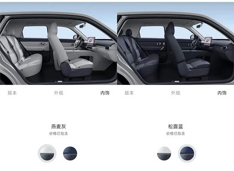 这两套内饰让我选的话,我会坚决选灰色。原因有两个,一是灰色本身更加明亮,会让小车的内部空间显得更大,而且车厢内已经有蓝色元素,加上灰色会更有设计感;二是深蓝色内饰的座椅纹路非常幼稚,看起来像是幼儿园的地面,而且深蓝色本身过于浓郁,看久了会腻。