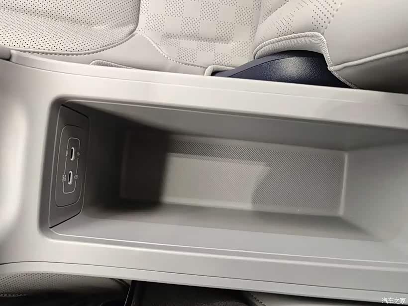 扶手箱里面有两个接口,一个是60W的USB-C充电口,盖板设计了足够大的缝隙可以把数据线拉出来充;另一个也是C口但是标识写的是REC,我猜可能是导出行车录像用的。