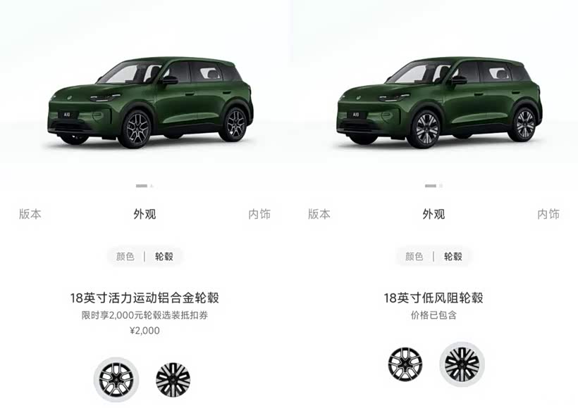 高情商的说法是作为一台全球车型,这样设计是遵循“国际惯例”;低情商的说法是有“换壳”的嫌疑,此前也有博主爆料称该车型与雪铁龙的C3Aircross同属STLAsmall平台。不过,由于这车标配了自动泊车功能,还支持离车泊入,车头向内停车倒也没什么难度,我觉得还能接受。半隐藏式机械门把手要好评,更要好评的是全系18寸轮毂,这对于普遍还在用16寸和17寸轮毂的竞品来说算是降维打击,这也是零跑A10显大的重要原因。但是要注意的是,除了顶配车型外,其余三款标配的均为钢轮毂,想要铝合金轮毂要额外花2000元选装,这个玩法说实话不太厚道。