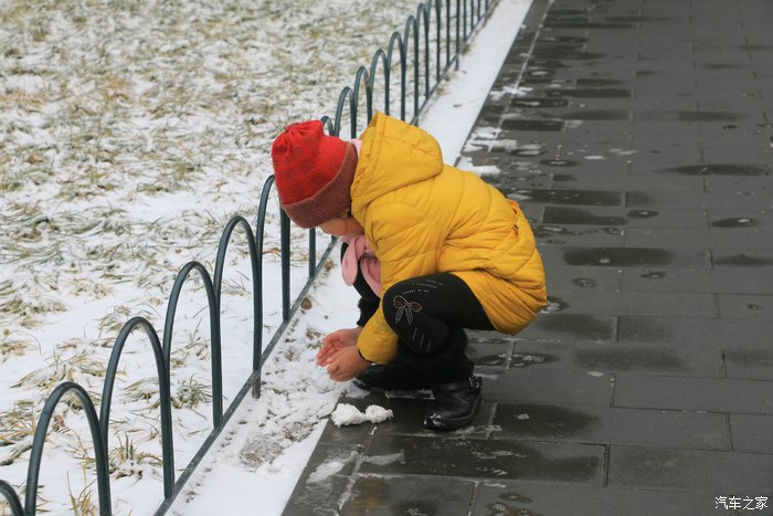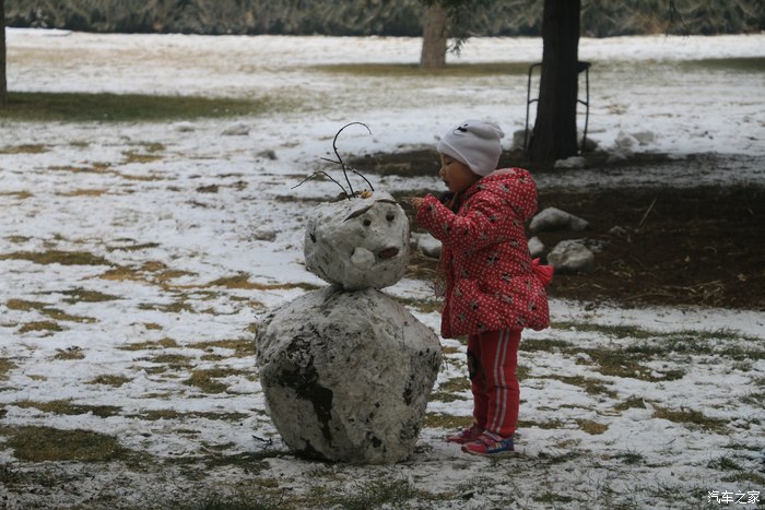 上图:看到其他人堆了一个雪人,小孩很是羡慕。