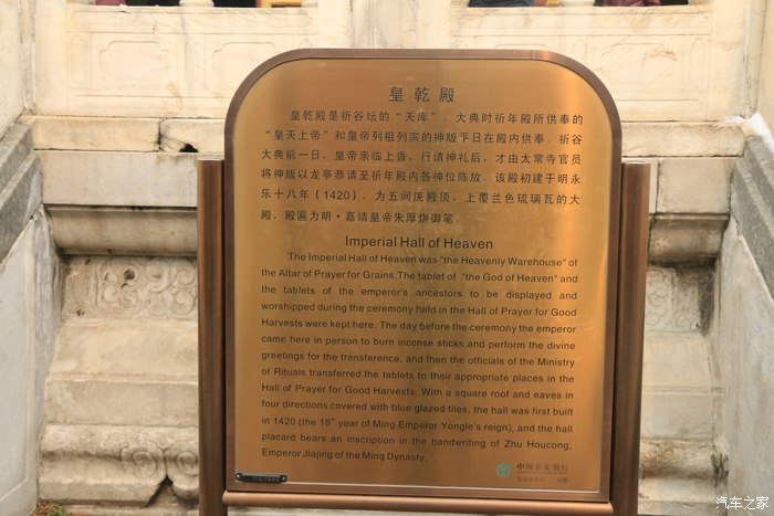 天坛始建于明永乐十八年(1420年),清乾隆、光绪时曾重修改建。为明、清两代帝王祭祀皇天、祈五谷丰登之场所。天坛是圜丘、祈谷两坛的总称,有坛墙两重,形成内外坛,坛墙南方北圆,象征天圆地方。主要建筑在内坛,圜丘坛在南、祈谷坛在北,二坛同在一条南北轴线上,中间有墙相隔。圜丘坛内主要建筑有圜丘坛、皇穹宇等等,祈谷坛内主要建筑有祈年殿、皇乾殿、祈年门等。著名的祈年殿在最北方,这是天坛内最宏伟、最华丽的建筑,也是想象中离天最近的地方。(简介)