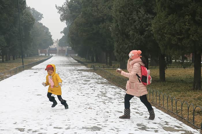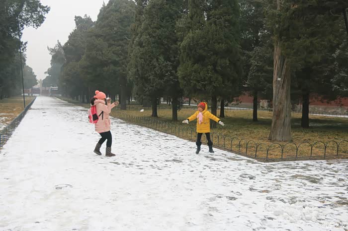 今天早上的一则新闻报道了2015年11月5日北京下雪,使我不禁想起了年初带小孩游玩天坛的那个场景,那是农历正月初九的早上,起床后,我打开窗帘发现窗外飘起了鹅毛般的小雪。街路上、屋顶上、树木上都披上了一层白色的衣裳。赶紧喊醒了小孩,以最快速度解决了刷牙、食早餐后立即赶到天坛公园游玩。因为天坛公园室外场地广,很适合欣赏雪景,同时也能够有机会让这个南方小女孩见识北方北方下雪后堆雪人/打雪仗/滚雪球那个快乐的场景。