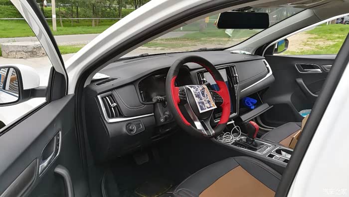 说明一点: 红色的方向盘套是我自己缝制上去的, 棕色座椅是自己加装的座套,原本是黑色的