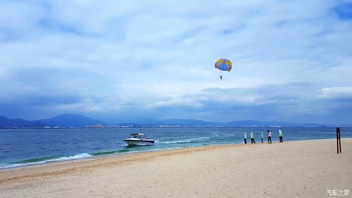 眼前的碧海蓝天,还有摇曳在空中的拖拽伞,让人心里好生欢喜。这才是度假的感觉。