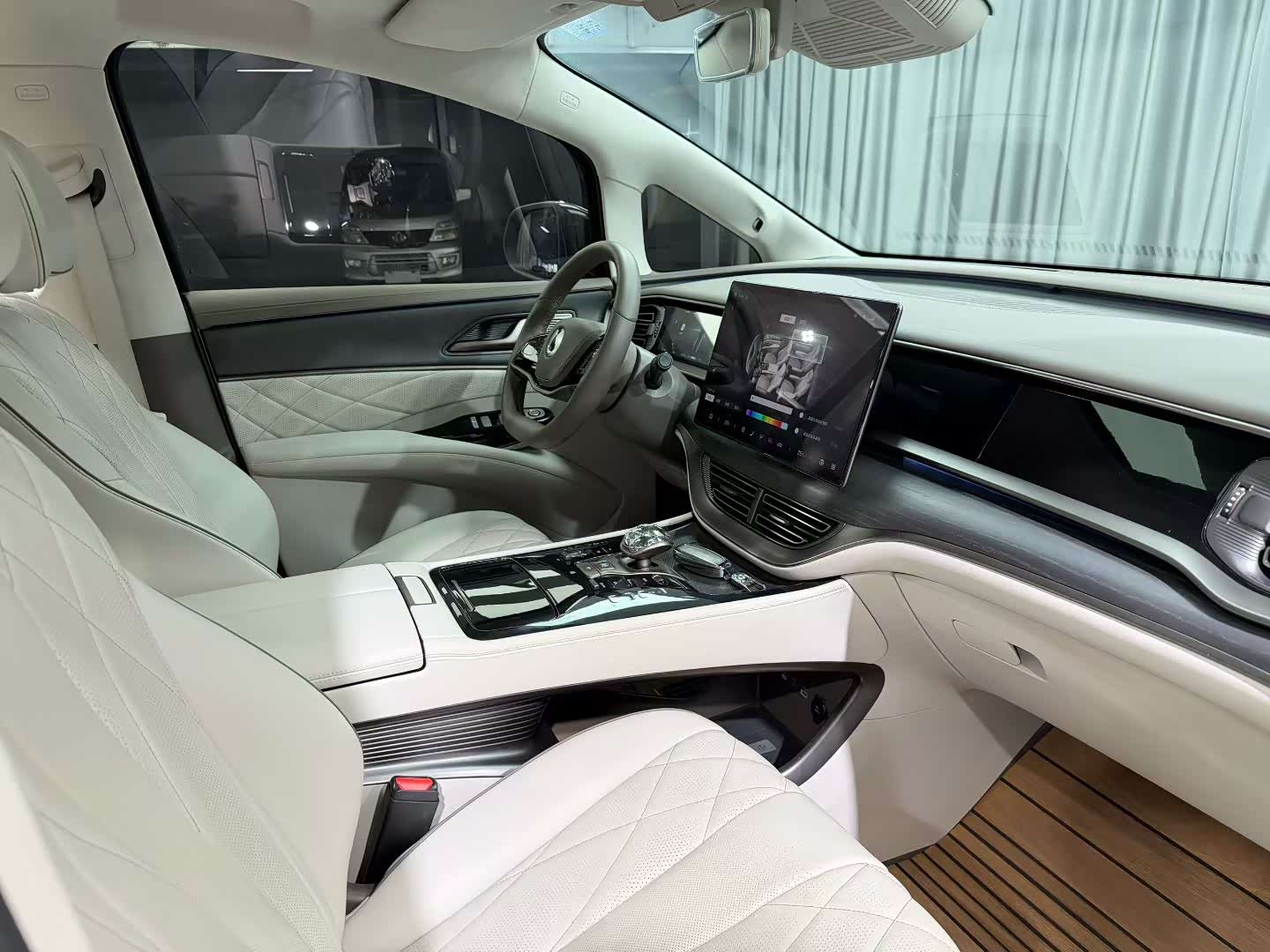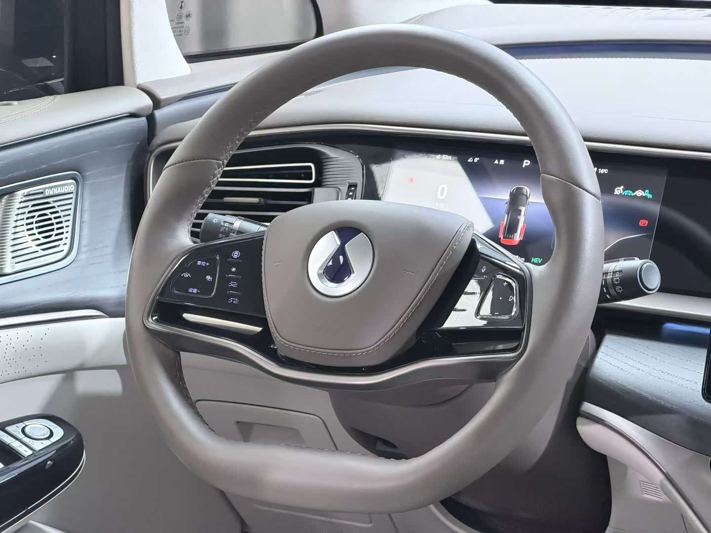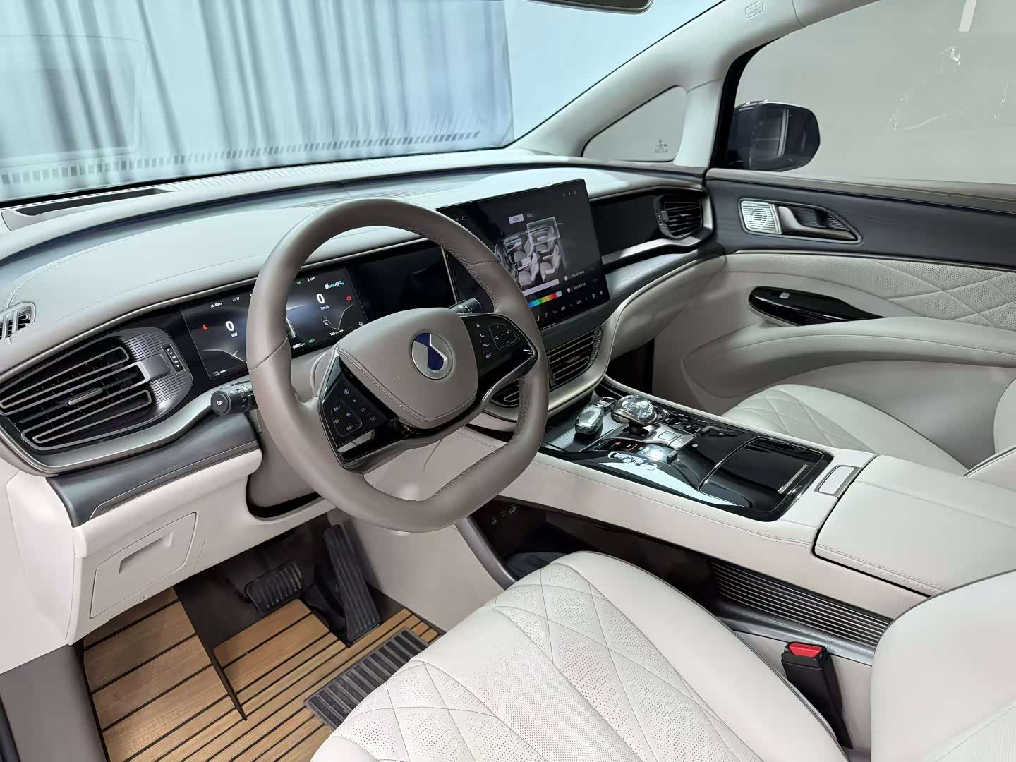 坐进D9的驾驶舱,最震撼的并非传统的豪华材质,而是由全车七块屏幕构成的智能交互生态。前排的15.6英寸超清中控屏与10.25英寸全液晶仪表盘组成驾驶信息中枢;后排两块12.8英寸头枕屏与中央扶手区的双智能屏构成娱乐办公系统;而W-HUD抬头显示则将所有关键信息投射于前风挡。