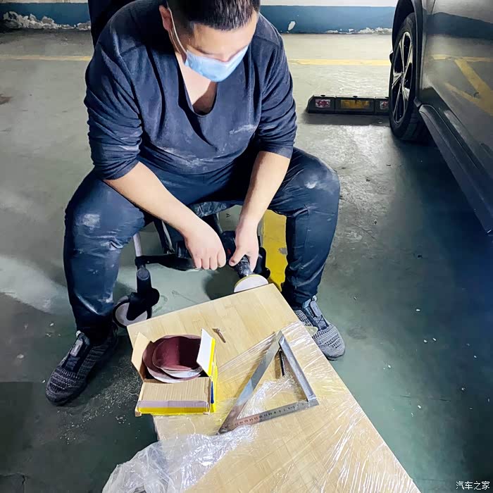 我带着助手(我媳妇)来到车库拿出我多年来攒下的工具箱,找出电砂纸片和磨头等工具对竹板进行DIY加工,经过仔细测量G3的后备箱遮物帘轨道宽口一边是107.5厘米一边是106厘米