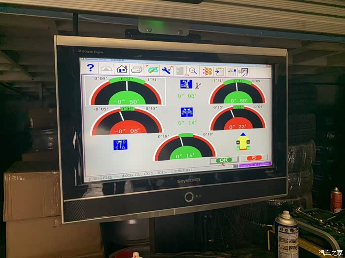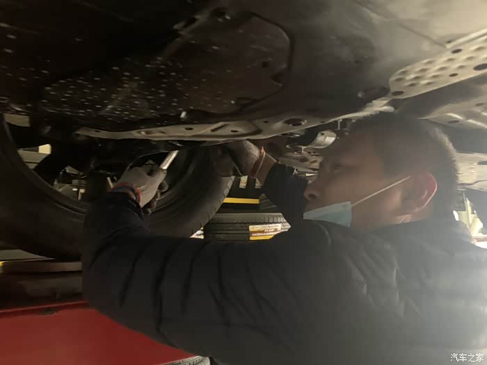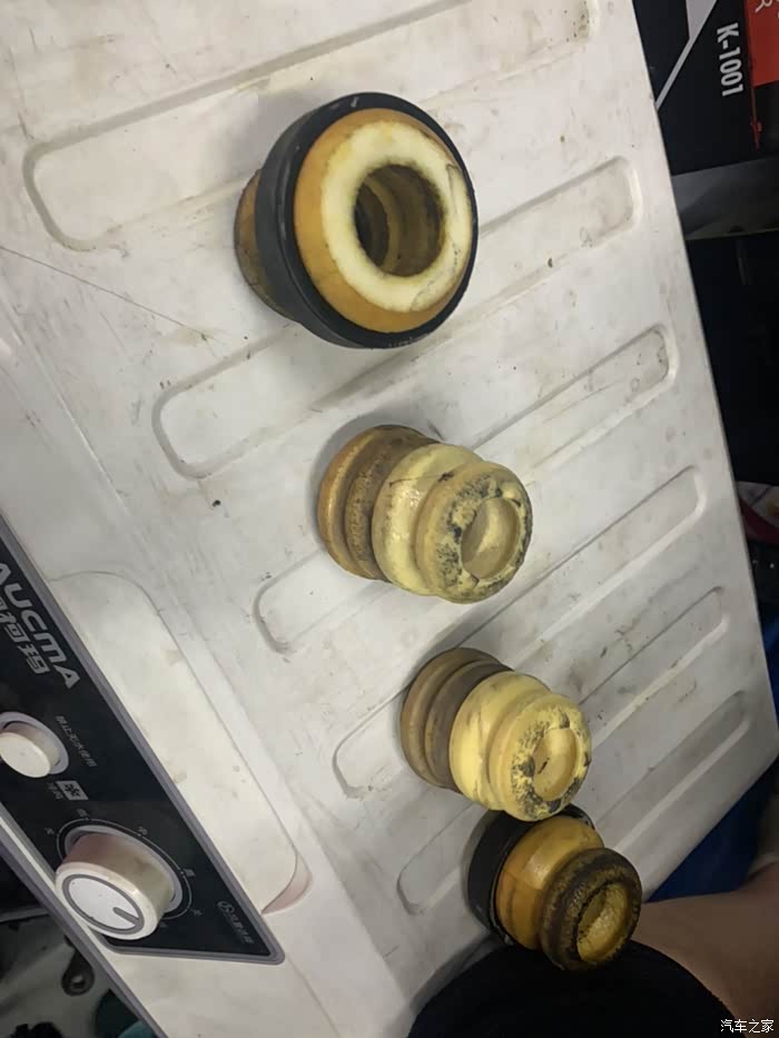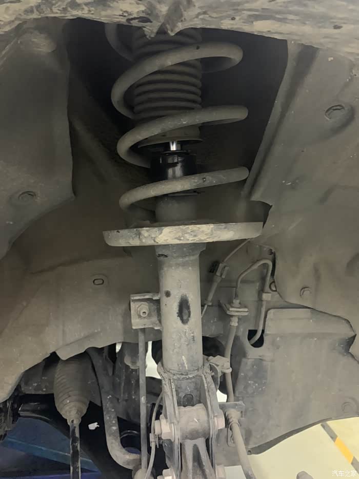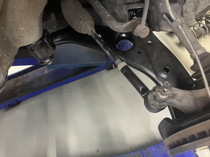 第二天返回维修点,根据论坛另几位兄弟的帖子指点做衬套复位,在四轮定位支架上松开减震螺丝,(此时衬套有明显位移,)摆臂固定螺丝,然后移动车身,上紧螺丝,做完感受:底盘紧绷感好转,方向紧张稍好转,但还是重。继续检查胎压,轮胎换位回到之前状态,断电、复位转向电机。再次四轮定位。状态依旧!
