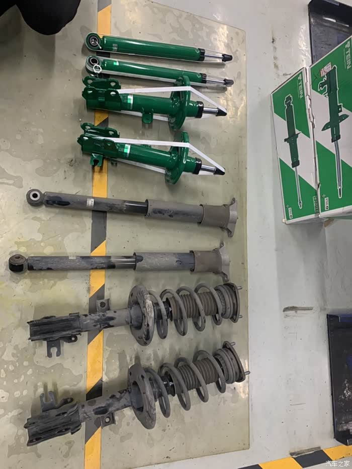 经过三小时等待,终于完工,顺便更换机油、刹车油、机油滤芯、汽油滤芯、四轮换位,四轮定位,出门试车。回家路上感觉到:Tein 比原车稍硬,回弹有力,慢速过减震带没有砰砰声,过坑颠簸减小,细碎颠簸路面过滤完全。侧倾减小,刹车点头改善明显,稳定很多,感觉不错👍!但也谈不上脱胎换骨。