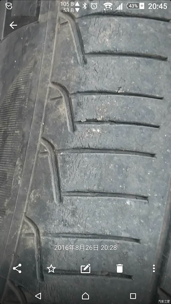 2013年4月购车,跑得少,现在里程才25000多一点。米其林轮胎的裂纹越来越厉害了,大约在2年就开始有了。请各位车友帮忙看看正常吗?