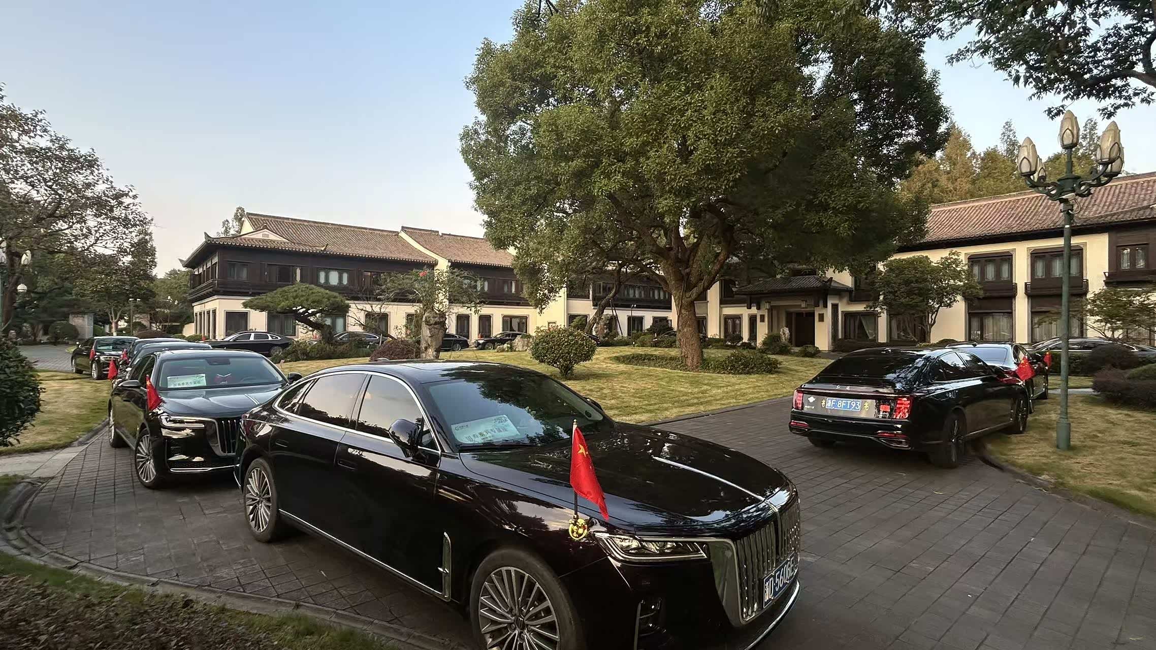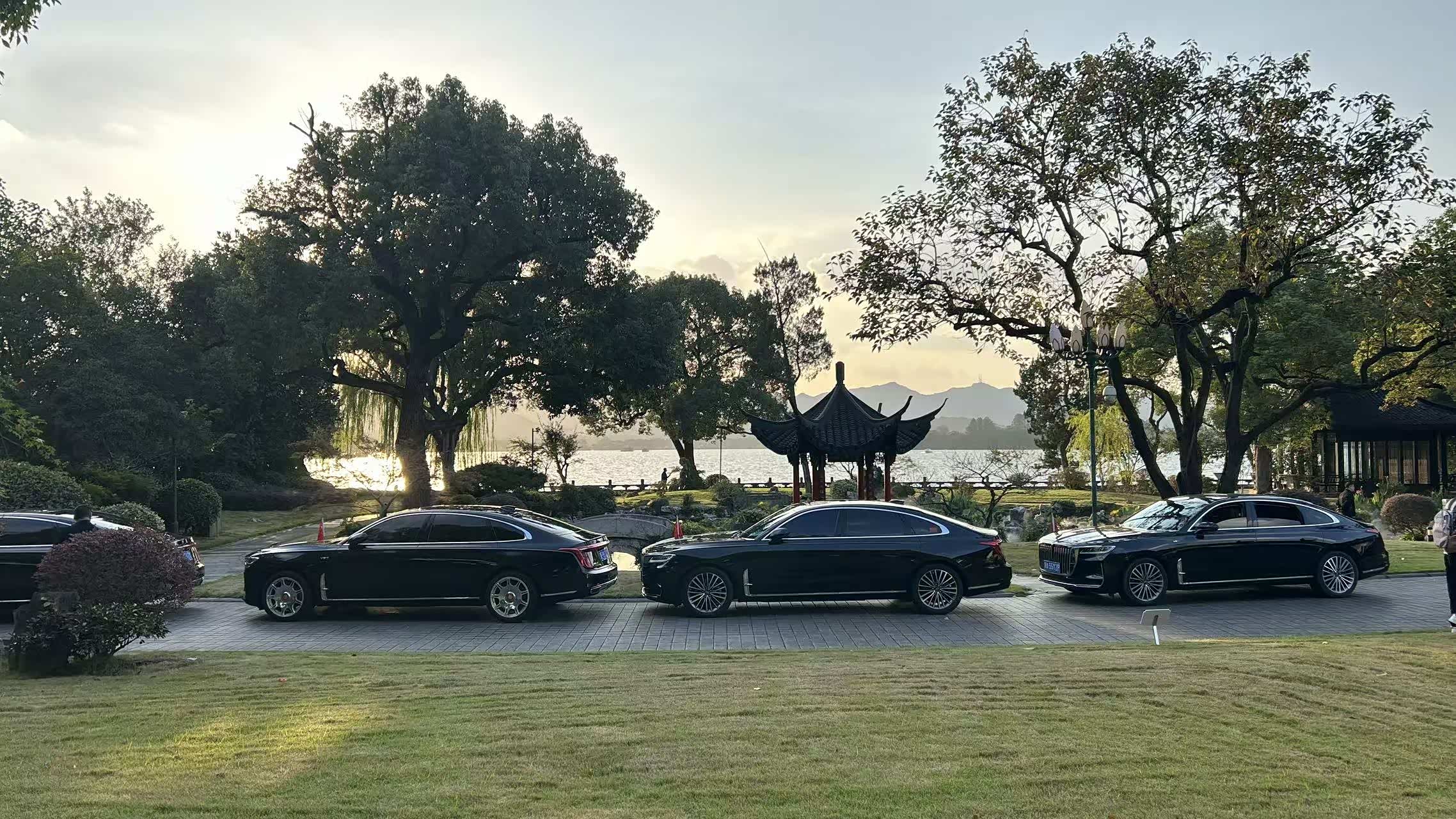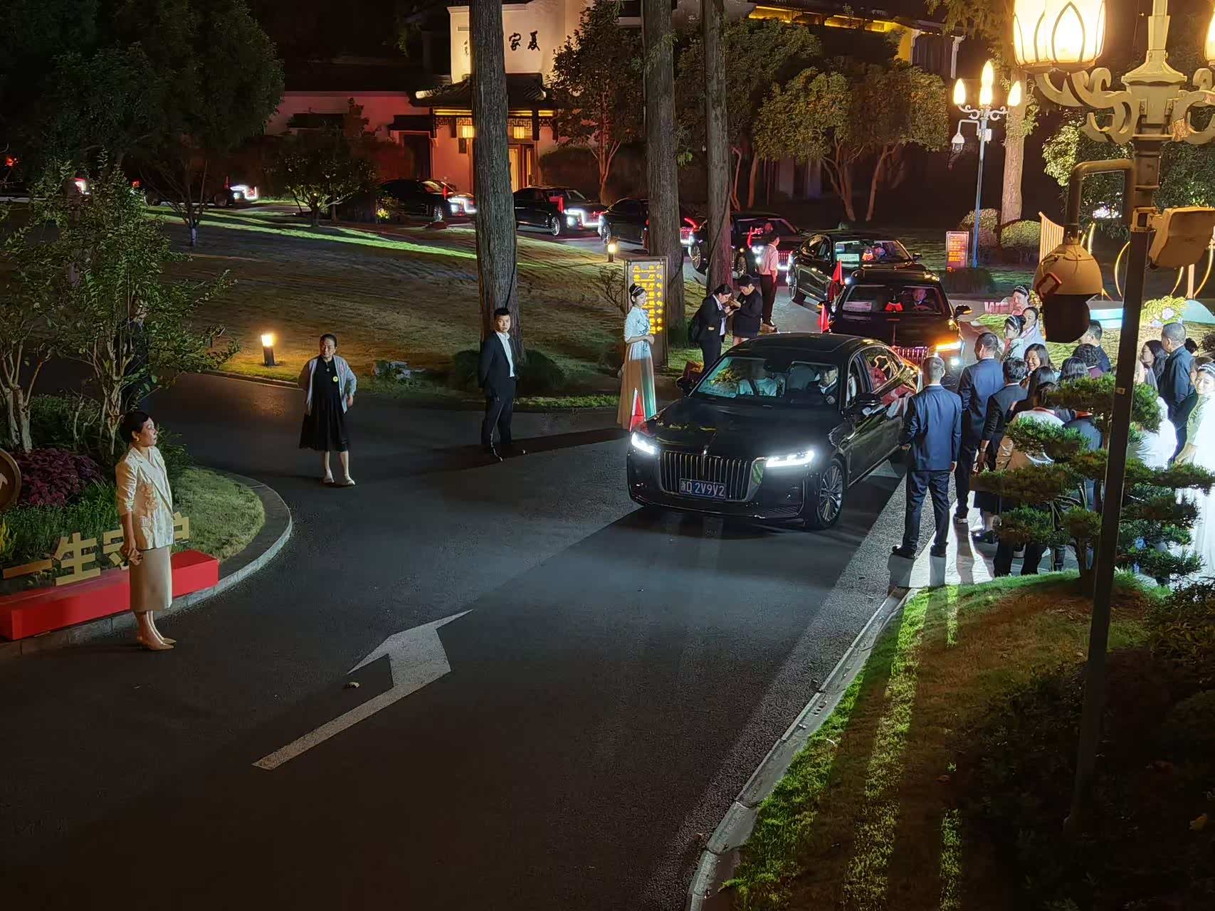 傍晚时分,车队准时抵达胡雪岩故居。正如前期勘察的那样,故居周边街巷狭窄,部分路段仅容两车并行。此时,红旗H9的360度全景影像派上了大用场,车友们通过中控屏清晰观察车身与路边石、其他车辆的距离,在工作人员的指引下,66台车辆有条不紊地停入指定区域,全程无一次剐蹭,引得路过游客纷纷驻足拍照,称赞"这车技、这配置,真厉害!"