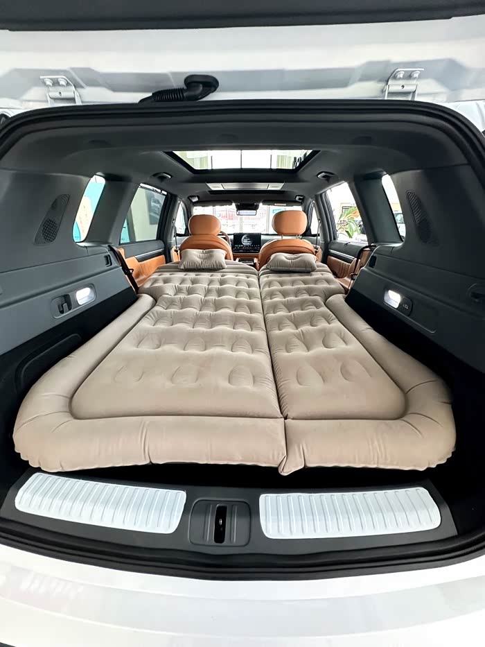 依据车内二排旋转座椅后的空间尺寸,我定制了合适的充气床垫。选用优质环保 PVC 材质,具有出色的气密性和耐磨性,适应各种复杂环境。电动充气泵的加入让充气过程轻松便捷,短短几分钟就能将床垫充至理想状态。床垫表面设计有防滑纹理,有效防止睡眠时身体滑动。自带的收纳袋方便在不使用时进行整理存放,不占过多车内空间。