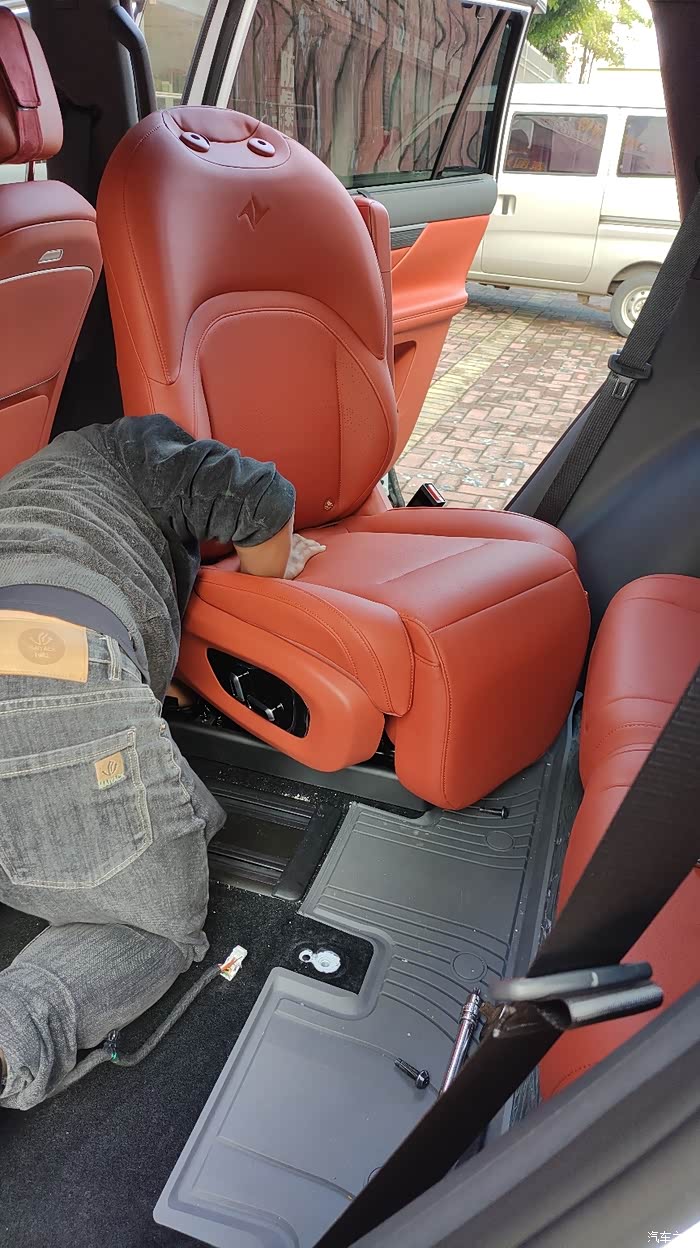 改装伊始,我使用专业内饰拆卸工具小心地拆除原车二排座椅,将拆下的螺丝与配件分类存放。随后,将旋转座椅底座精准对位,用螺丝牢固固定在原车座椅位上,过程中仔细检查线路连接,确保座椅加热、电动调节等功能线路连接无误且无缠绕风险。