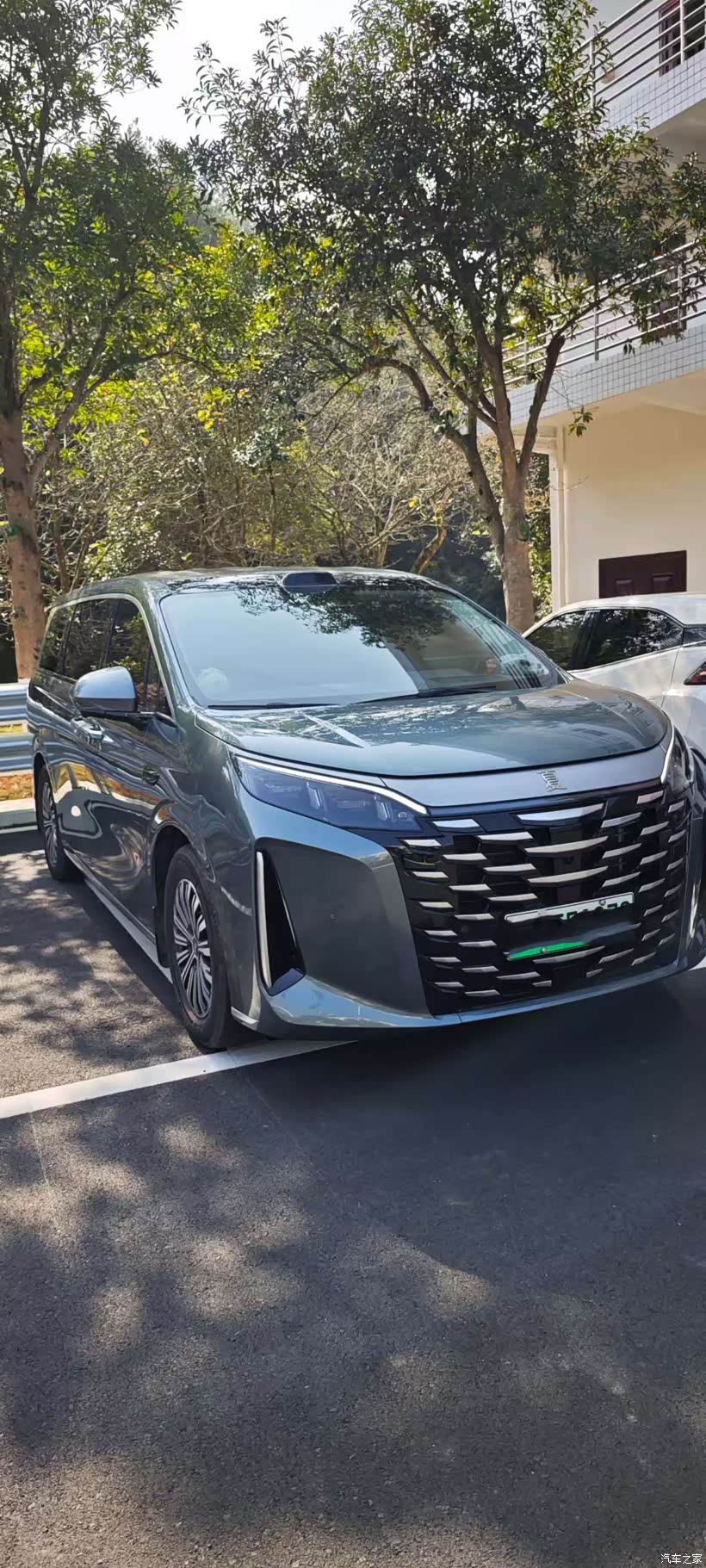 感受:这个车很长很大,开起来很灵活(有电的时候),亏电就是拖拉机,有些响动了,整车笨拙,且速度要硬踩才能提得起来。空间上很好,但确实不如原来开的丰田逸致,总结起来就是:百年企业,人家懂得怎么把空间、把内饰挖空心思地给你找地方放东西(原来一个车门放五瓶 500ml 矿泉水不是问题,这车车门地方做的不够深,怎么放都不合适,也就前门两个兜放几支,中门各一个,后排各一个,最后下沉尾箱也不好放东西,多了就容易掉),座位下面、两边很大空隙,只能到处塞,不好取不好放;前面的手套箱也小,仪表台平整,但也没有什么放的空间,而且用的仿皮,只能再买个垫子,不然没两年肯定晒开裂;整车密封性很好,但中门一开,前门再关的时候就不是很紧密,感觉就是门碰架子,平时主驾的门也经常不好关紧。冰箱也就是 5 瓶矿泉水,太小,前中屏幕都 15.6,而且中间屏幕打开就容易碰头、损坏,设计上也缺乏心思。