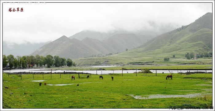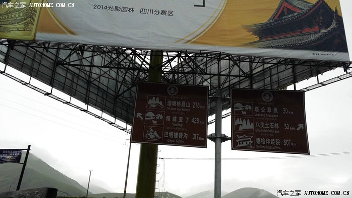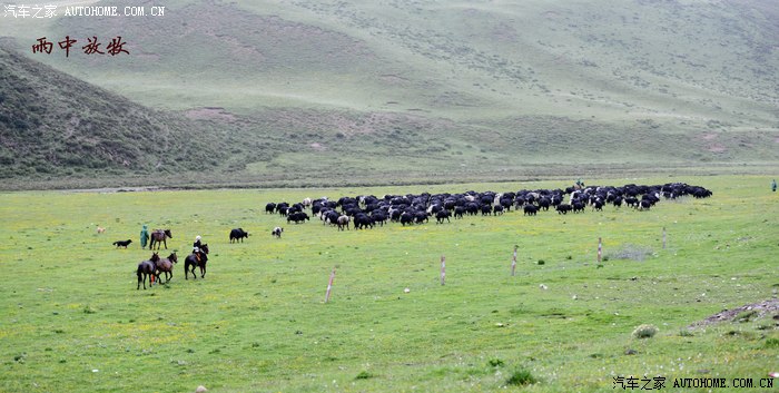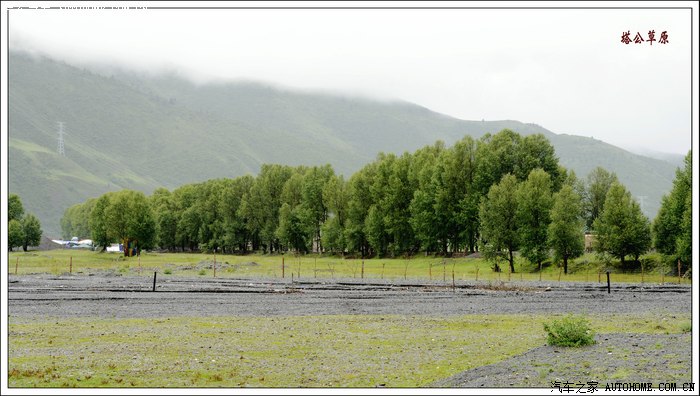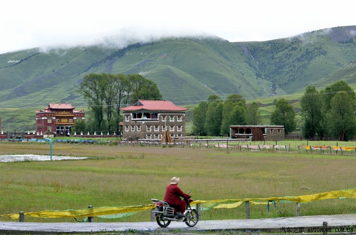 2014-07-14,出行第四天。昨晚新都桥下了整夜的大雨,上半夜还雷声不断。她有轻微高原反应,即不能入睡,吃了安定片以后都过了许久才勉强睡着。我一切正常,因为没有网络,写完随笔后看了会儿电视,凌晨1点睡觉。早上6点就醒了。由于这里还在下雨,拍照不方便,所以8点过出发去了30km以外的塔公草原。一路上也是小到中雨,有部分路段在翻修,不太平整,也就是大家所说的“搓板路”。这路对我和车来说算不上回事,一路边走边摄顺利到达塔公镇。雨停了。镇不大,几分钟就穿过小镇,出了小镇不远就是塔公寺和塔公草原。没进寺庙,不太感兴趣。直接开车上了寺庙旁边的山坡,被藏民收了100元的“门票”,说10点钟有歌舞表演。这个山坡位置很好,山下的景色一览无遗,塔公寺方方正正,看起来非常干净,山下的草原上有些游客在骑马,山上的游客则在疯狂拍照。等到11点过了,歌舞表演还不见动静,决定走人。这类歌舞表演曾经看过的,现在并非不看不可。