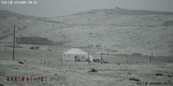 进入巴塘境内,雨更大了,温度也从12度急剧下降至2度、0度,雨水很快也从雨滴变成了雨夹雪再到雪片,翠绿的草原一下成了白茫茫的世界。海子山观景台地面结冰了,肉眼还可看到1km以外的两个海子——眼镜海,照片可就不怎么看得清了。海子山观景台海拔4690米,从此向山下行驶1000多米雪花又变成了雨滴,温度也逐步回升到2度、5度,雨水渐渐变小,云雾散尽,视野宽广,道路两旁景色雅致,把眼眸洗得透净。