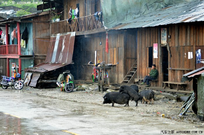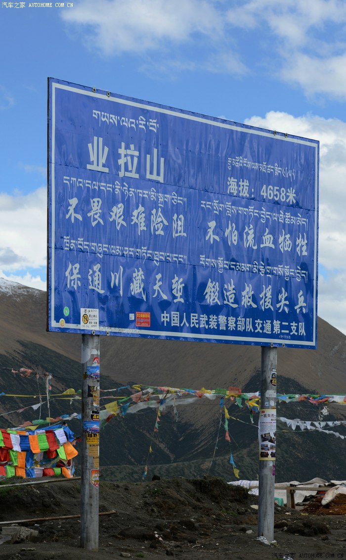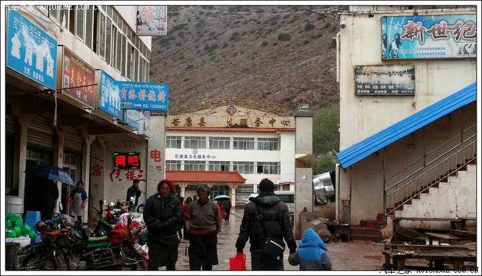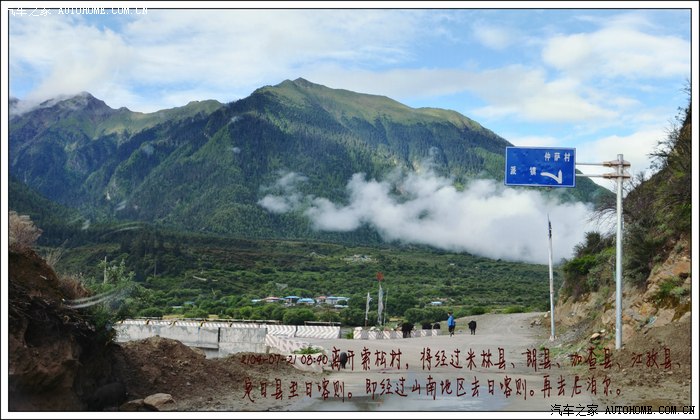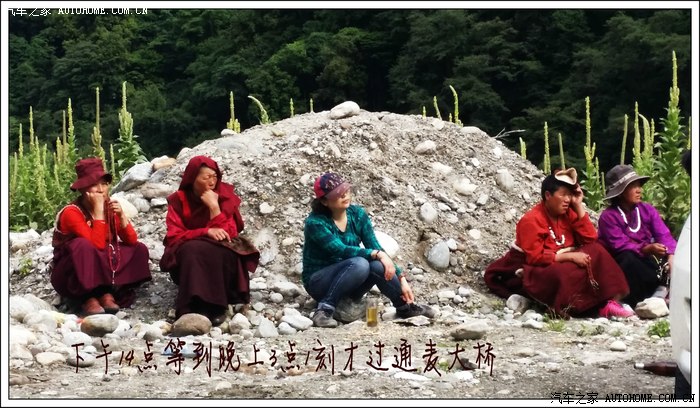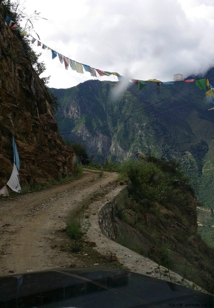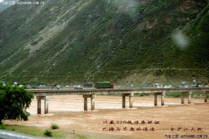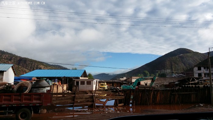 雨停了,一路风光无限,到了巴塘检查站,登记驾照、行驶证和身份证,在警察的安全行驶嘱咐中继续向前。路过巴塘县,感觉这里比理塘修得漂亮些,干净整洁多了。在此又搭了一位大三的男孩,是独自瞒着家人背包出行,准备去西藏云南广州等地,说是出去打工了。在竹巴龙金沙江大桥,汽车排成了长队,过了这座大桥就进入西藏境内了。芒康方向有塌方在抢修。堵了2个多小时被告知无法预知何时可以通车。大学生只好下车步行走了。我是铁了心等待的,结果不到20分钟路通了,放行了部分小车,我们因为在堵车时预先去芒康检查站登了记,有幸被放行。原来计划中午12点到达芒康县城,不曾想到这70多km的道路走得战战兢兢,从来没有见过有如此多飞石的道路。一路遇到飞石路段无数,幸运的是没有遇到正在落石的情况,但路边有被飞石砸凹了驾驶室车门并且还砸穿了一个洞的三菱越野车停着,轮胎也出了问题正在准备换胎。路遇塌方两处,凭借黑虎的功力,毫不费力地从乱石堆上走了过去。轿车则只有等着推土机帮忙了。本来叫家属提前下车步行到前面去想拍下黑虎过乱石堆的精彩画面,可是由于我过得太快她还没有准备好我就过去了,错过了这难得的机会(要是平常可舍不得在这样的石堆里行驶,这次可是做好了让黑虎受伤的心理准备的)还让我郁闷了好久,好想骂人。还是她素质好,知道我生气了,为她的“失误和不专业”而后悔。我俩沉默不语好长时间直到下午3点过到达芒康后。其实也不该怪她,她又不是专业摄影师。后来我在当晚的随笔中给她道了歉。