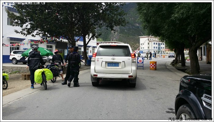 2014-07-17,今天是连日来最轻松的一天了,从八宿到波密200km多一点,路好走,天气晴朗,风景优美。早上8点出发,带上昨天的那个大三男孩,到了出城的检查站登记,遇到了昨天未搭上我车的那个女孩,她昨晚也到了八宿。也许是他俩约好了的,我们也只当是偶然再遇,鉴于这女孩昨天的大度表现,让这男孩先上车走了,她自己另想办法再搭车,今日决定把她一同带上。收拾后座的的行李腾出一个座位,4人上路。这两个大学生非常不错懂事也有礼貌,一路上还帮我们拍了不少有意思的照片。大家高高兴兴边走边玩。