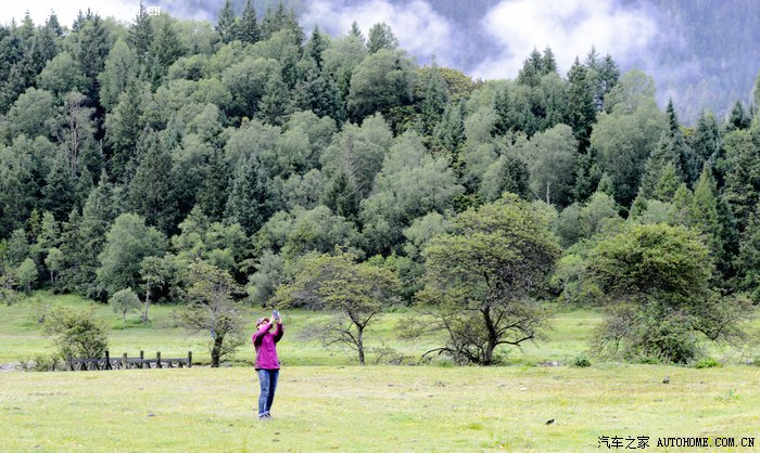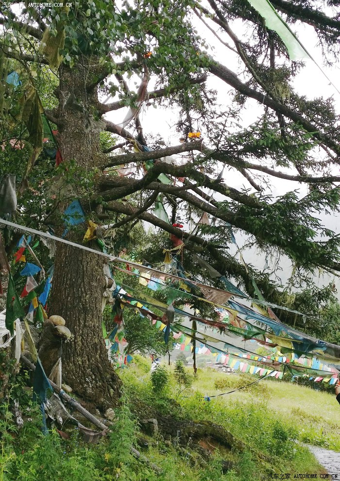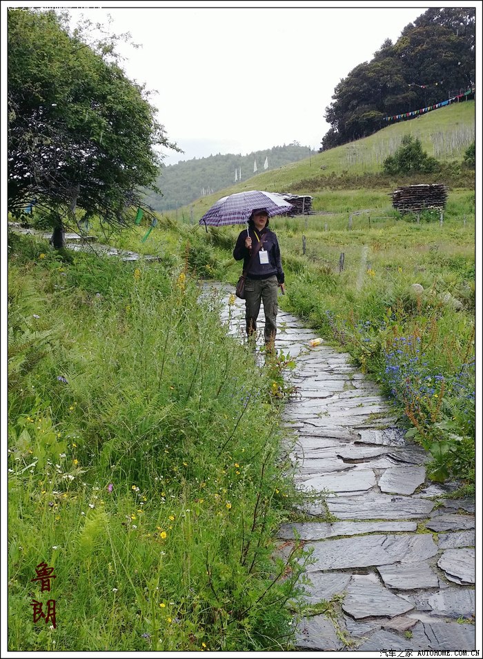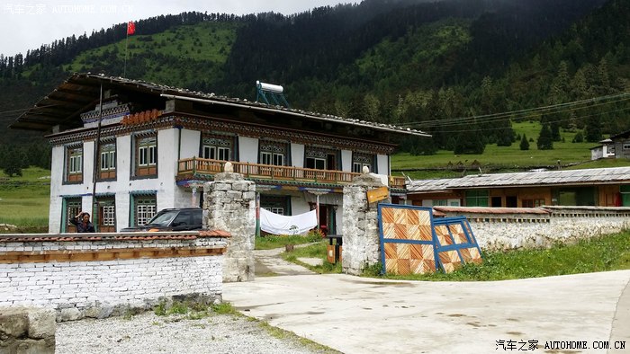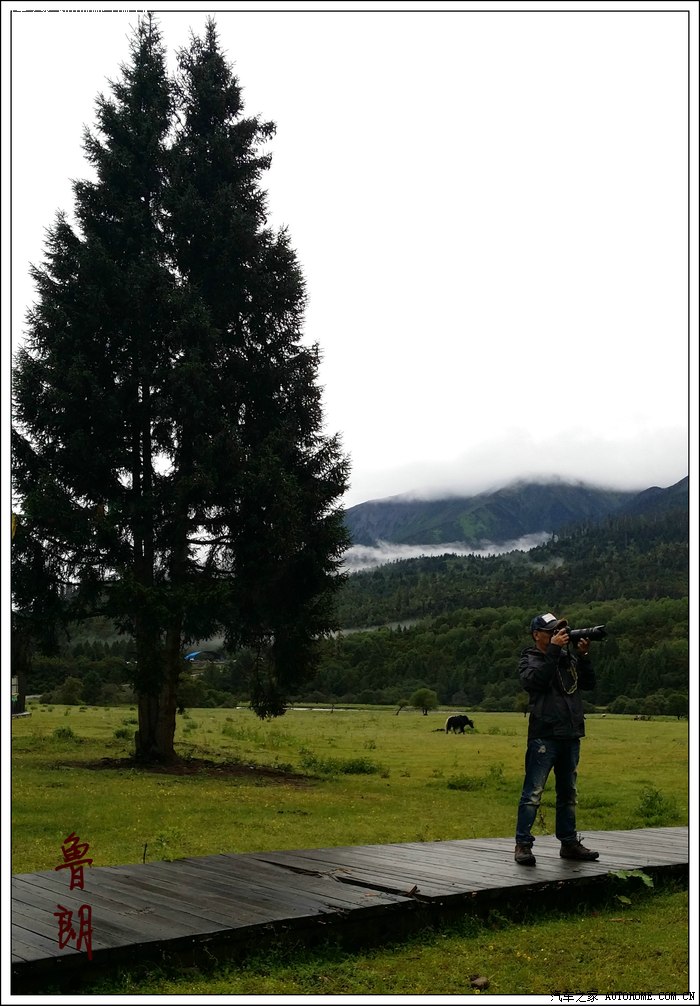 熬了一宿,早上8点过到了鲁朗风景区。因为时间还较早,景区入口没人值守,大门也只有半边有栅栏,可以随意进出。大门外的停车场空荡荡的,只停了两三辆车。游客都自由地进去了,省了每人80元的门票。景区里面的草坪、树木、木板栈道、遮阳伞、清澈的河流、草场上自由活动的的马、牛,干净的环境,醒目的经幡,两旁高山上的云雾,构成了非常美妙的画面。空气清新,光线柔和,拍出来的照片好看极了。逗留了半小时,准备去林芝。仅仅走了几百米,就看到公路左侧景色非常漂亮,有小村庄掩映在里面,路过的车纷纷靠边停下玩耍和拍照 。偶然与一位四川人闲聊,得知他们昨天就在这个名叫扎西岗村的地方住下了,村里面很不错,农家乐环境美,住宿虽然简陋点但很干净,吃住便宜。农家乐里还可以自己洗车,还有洗衣机可以自己洗东西。听完了心里直痒痒,本来夫人就说过好几次要在鲁朗住上一两天,她听别人说过鲁朗如何安逸的。昨晚没睡觉,正好住在这里可以修整一下。听了四川人的建议,开车直奔村里面靠近山脚下的白玛农家乐,典型的藏式民居,大院坝,宽敞干净。房间虽然不如好的宾馆设施齐全,倒也是非常整洁,没有那种有些人闻不习惯的异味。叫女主人开好房间,夫人去吃早餐,我是没有吃早餐的习惯的。太阳照得暖洋洋的的,睡意全无,我迫不及待地把车开到自来水管旁边停好,接上水管自己洗车了,车子昨晚过通麦天下已经脏得不像样了。还把昨天在泥石流处弄脏的鞋子洗得干干净净的晒干。