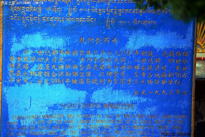 我们因为要赶到樟木,所以也不能在江孜游玩了。 今天早上9点从江孜出发,江孜县和白朗县都是西藏的粮仓,道路两旁都是大片青幽幽的青稞地、小麦地和鲜黄的油菜花,非常漂亮。一路没遇到检查站,10点过就到了日喀则,慕名去了扎什伦布寺。游客很多,扎什伦布寺规模很大,占地70万平方米,有多个班禅大师的灵塔祀殿,现任班禅十一世就在这里。这个寺庙创建于1447年。早在1961年就被列为全国第一批重点文物保护单位。门票80元/人。我们即使走马观花地看看,花了2个多小时都没转完。