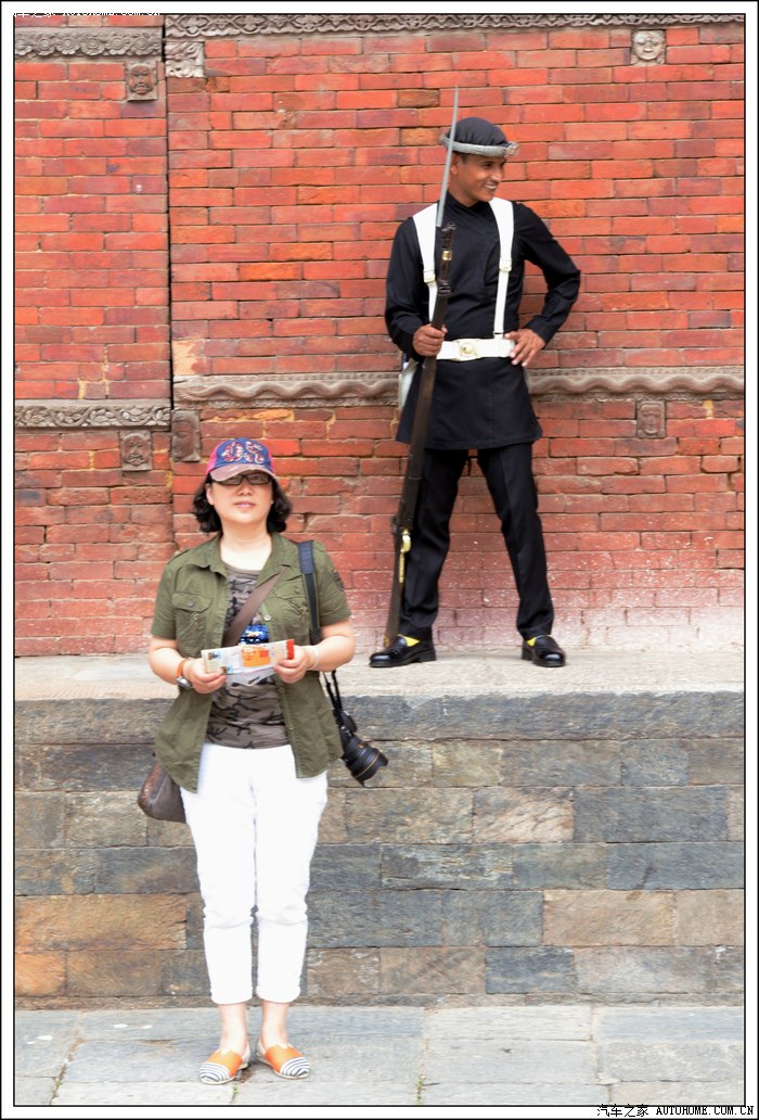 在尼泊尔很难看到好车。几天里我见到过最好的一辆车是老款的陆巡,奔驰宝马的影子都没见过。低档的现代和大众的轿车稍多些。在加德满都泰米尔区域也难得见到一条像样的公路。你无法想象这里是一国之都。我们的导游在加德满都接到了我们,一辆比较新的大众斯柯达手动挡轿车就是我们以后几天的专车了,就司机、导游和我们四个人。导游是尼泊尔人,二十多岁,个子不高,中文水平较差,沟通起来有点困难。英语水平也不怎样,我这个丢了多少年的蹩脚的英语还勉强可以和他沟通,甚至他还表扬我的英语说得好。其实大多数时候我也是靠一些单词拼凑的,没有啥子章法。这个导游五兄弟,老大在日本做导游,老二在大学教书,老三在家和父母一起务农,老四和他在尼泊尔做导游。