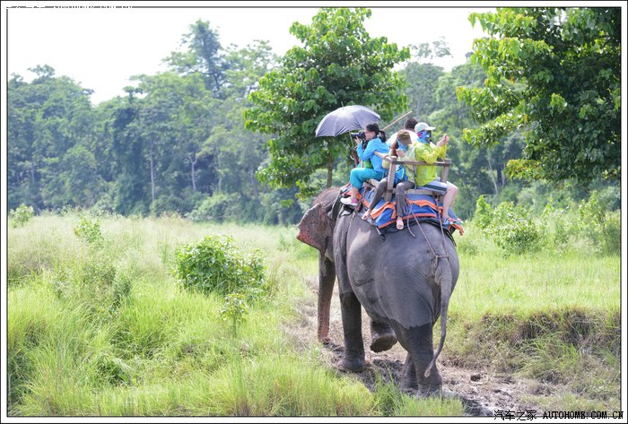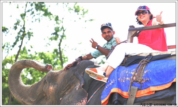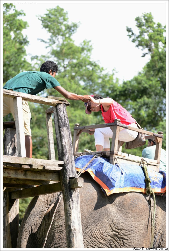 略微休息,13:30点由旅馆派车送我们去景区,骑大象游览森林公园,看动物,包括鳄鱼、孟加拉虎、独角犀牛、孔雀、鹿、猴子等。由于是旅行社安排的,所以这一路游览参观的价钱如何也就忘了关注。第一次骑大象,满怀期待。4名游客共坐一头大象。天气闷热、颠簸、蚊虫和树枝擦挂等等都使人难受,原以为是享受,结果是艰难地熬过了近2小时的时间,骑在大象背上期间巴不得快点结束,可是那个大象走的慢悠悠的,赶象的人也是不慌不忙的非常尽责地带我们在原始森林里转悠,就是为了让我们能够尽可能多的看到那些动物。我们只有虎和鳄鱼没有看到。坐在大象背上拍摄也是不容易的事,抖动厉害,在大象走动时对焦取景都不容易,我还拍了些清楚点儿的照片,而夫人拍的几乎全是跑了焦的。
