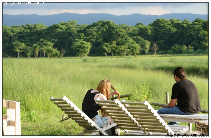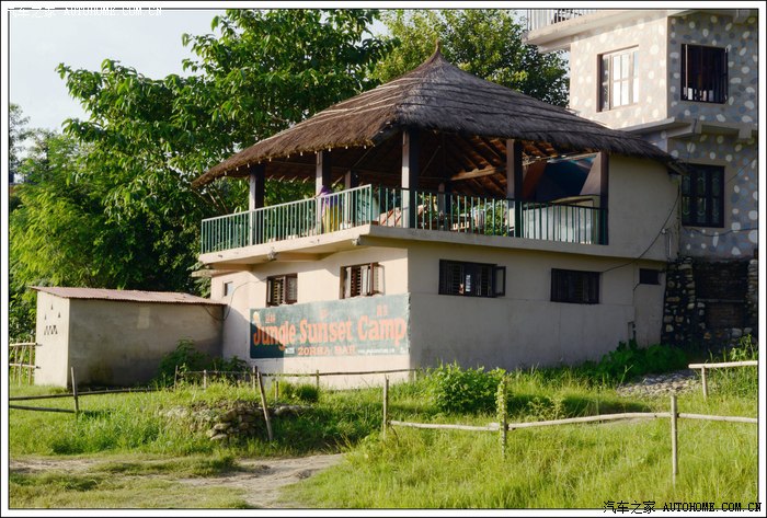 今天是尼泊尔行程第三天。目的地——奇特旺国家森林公园。早餐后于07:30点出发,里程160km,山路为主,斯柯达轿车也得走4个小时。沿途没啥好看的,半睡半醒地没过多久一样就到了,其实时间已是11:30点了。车子把我们带进了一家名为SAFARI CLUB(游猎俱乐部)的旅馆,环境非常漂亮,房间也宽大,一大一小两张床,干干净净的,空调已打开,非常舒适。12点午餐,鸡肉搭配蔬菜、米饭、面条。