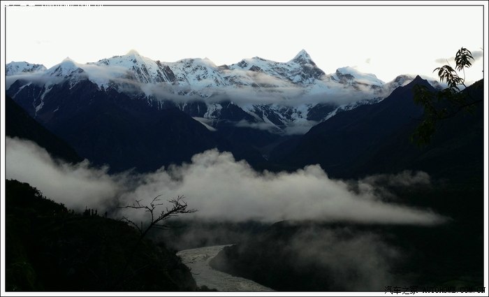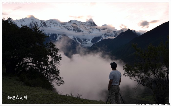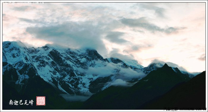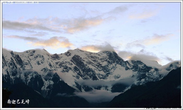 今晨5点40分闹钟响了。赶紧起床以免误了看南迦巴瓦峰的机会。带上手机、相机、脚架出门。本打算在客栈的阳台上拍摄,却碰见了次仁顿珠,他叫我去院子外边的地里,也就是昨天下午小女孩带我们去的那个山崖旁,在那儿可以同时拍到南迦巴瓦峰和雅鲁藏布江。真是遇上了贵人。去到那里找好地方,摆好脚架装好相机,06:30分了,天边已开始发亮了,南迦巴瓦峰还没出现,一弯月牙还挂在天上。点上一支烟静静等候······,阿弥陀佛!南迦巴瓦峰慢慢露面了,渐渐的整个山峰完全展现在面前。尖尖的山峰像剑一般直插苍穹,淡淡的彩霞映衬着覆盖白雪的山峰。略有些遗憾的是没有出现“日照金山”的景象。不过也不能太贪心了,多少人蹲守了多少天都不一定看到了“羞女”的面容。