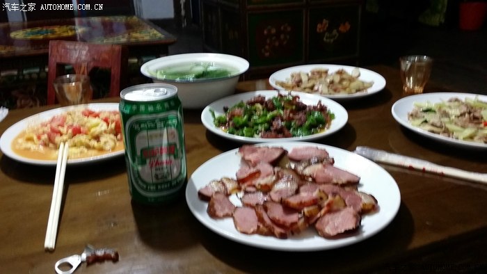 晚餐,手机拍的,光线不好,拍虚了。进入藏区,每天晚餐喝1-2厅拉萨啤酒。