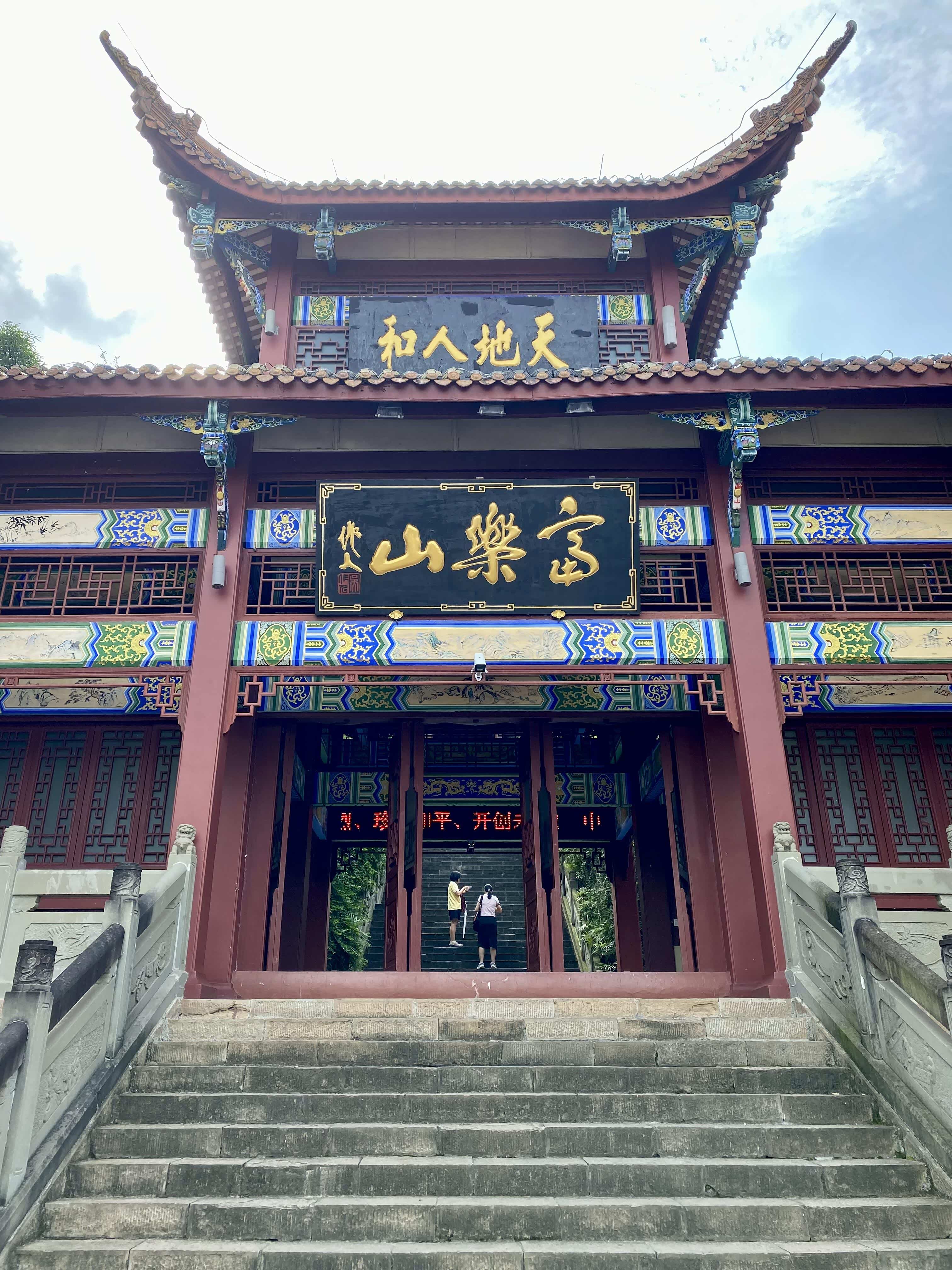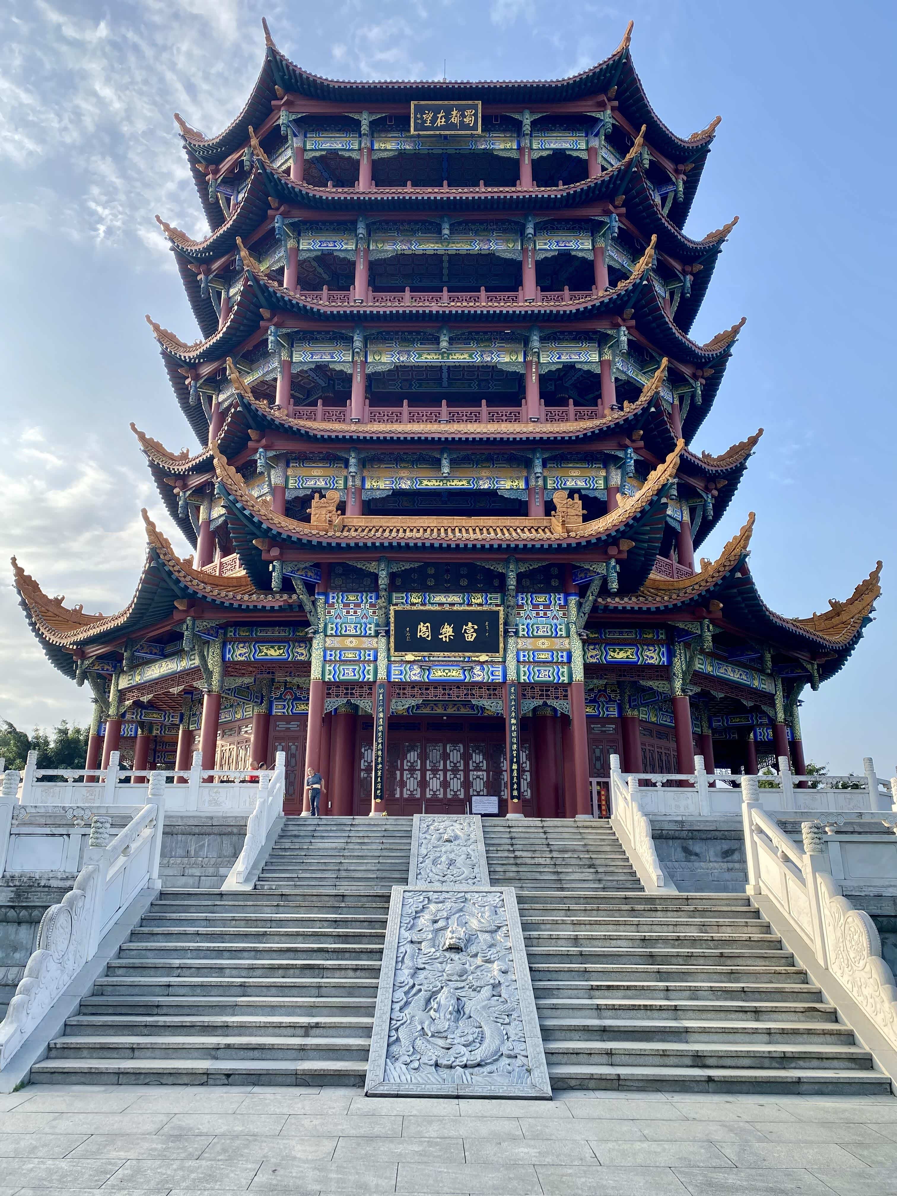 休息了大概一个小时,我们继续往上爬,目标是山顶的阁楼。从观景台到山顶的路稍微有点陡,不过好在路程不算太远,大概走了二十分钟就到了。山顶的阁楼总共有五层,看起来古色古香的,很有韵味。我们沿着楼梯往上爬,每一层都有不同的风景,越往上视野越开阔。爬到第五层的时候,风有点大,但景色也最美,不仅能看到绵阳市区的全景,还能看到远处的富乐堂和周边的田园风光,那种“会当凌绝顶,一览众山小”的感觉真的太奇妙了!