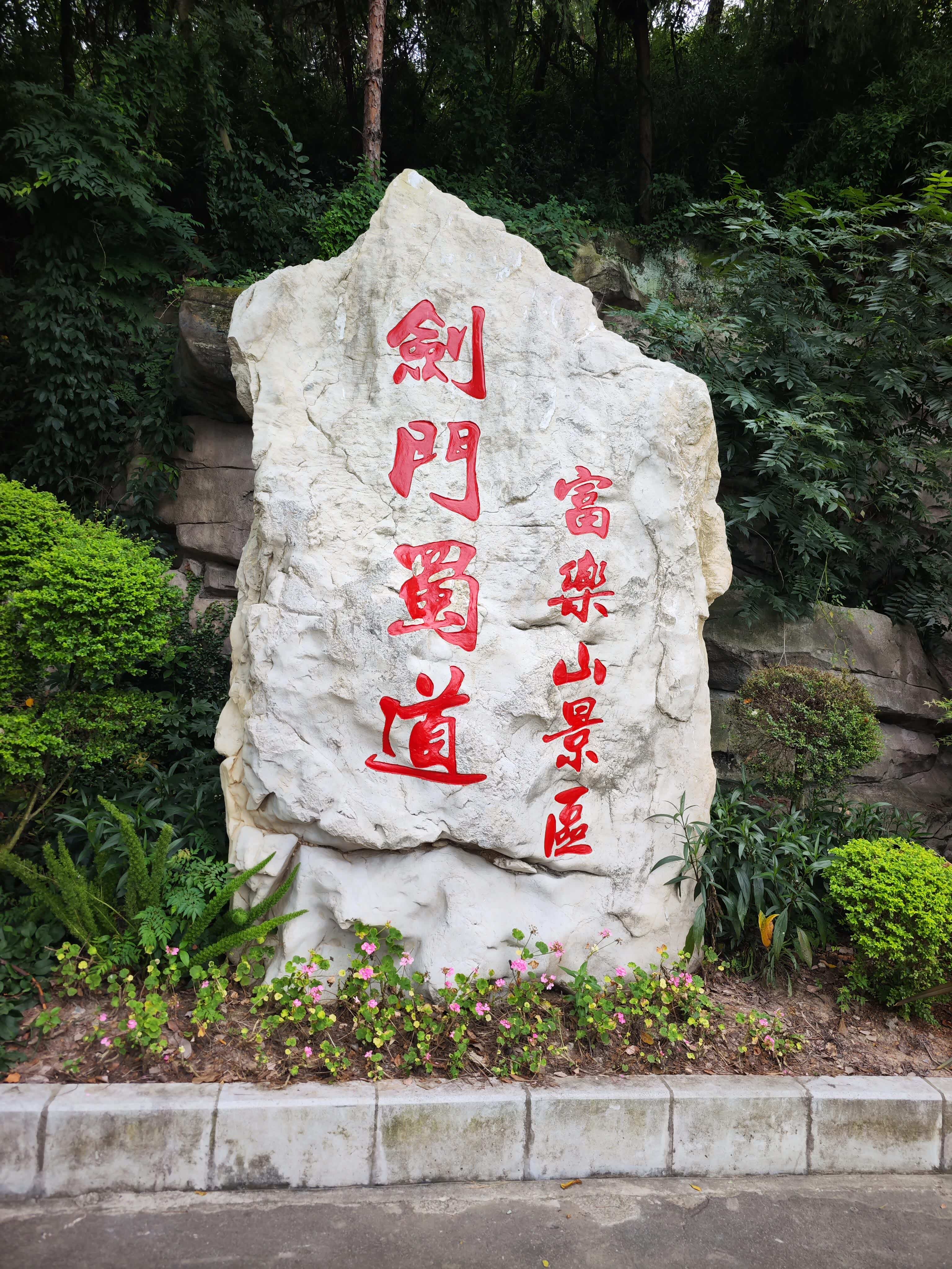 走了大概十几分钟,我们遇到了第一个休息区,有石凳和遮阳棚,还有卖矿泉水和小零食的摊位。我们停下来喝了口水,孩子在旁边的小广场上跑了跑、跳了跳,补充了点能量之后继续往上爬。沿途的风景越来越美,路边有很多不知名的小花,五颜六色的,特别好看。