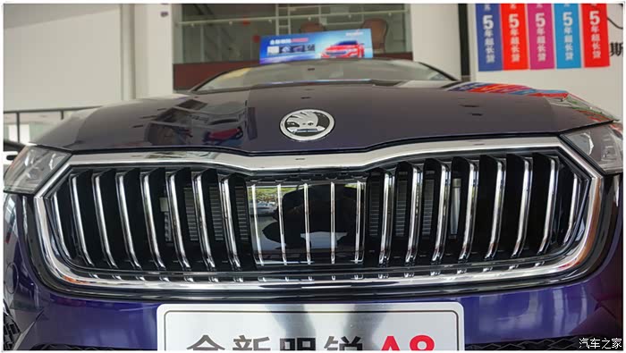 它的前脸承袭家族式直瀑式造型,但是略有改观,整体轮廓前突,呈扁平状。