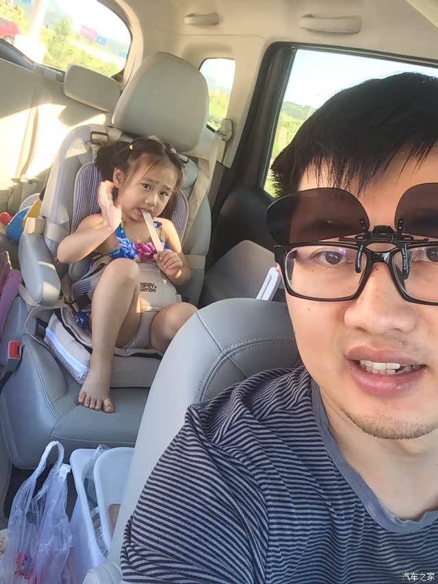 1.出行感受:这是一台舒适的适合远行的车。由于小车动力不强,所以我们俩大人仅仅带了几件衣服,其他都是孩子的衣服玩具食物尿不湿……给家人带的礼物等。弟弟和妈妈白天坐在右边躺着玩,姐姐在第三排或睡觉或玩。我只负责开车。