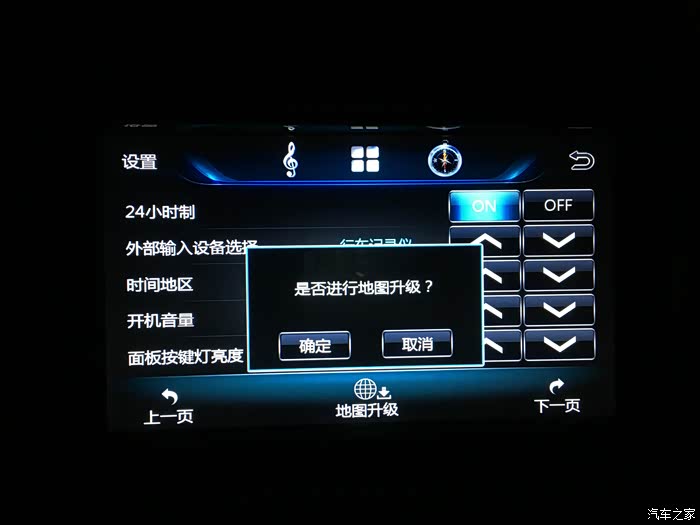 然后插上U盘,开机,进入设置界面的第二页,点地图升级(如下图),