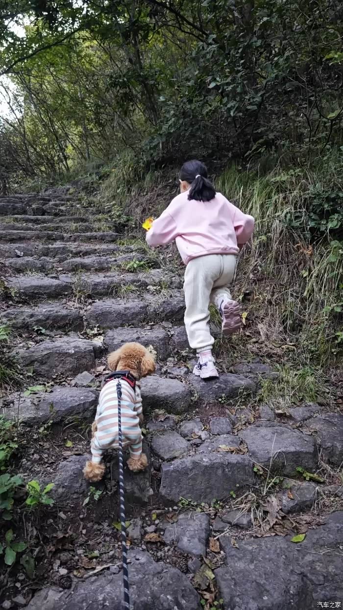 极狐这个车最值得称赞的就是一个操控,驾驭感太棒了,指向性很清晰,指哪打哪,而且秋季不用开空调,开着窗吹着山风,真的太舒适了。今天我们家的小泰迪三多也跟着一起登山了,它似乎还没从来没有爬过这么高的山。我的小女儿貌似也没走过这么远的路,五六公里的山路,也不知道小家伙能不能顺利的登顶😎