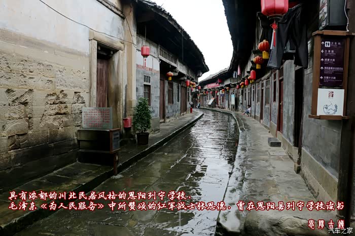 逢假必出,决不辜负美好假期,大假前做好出行攻略,选择一个休闲与清静的地方,不添堵、不添乱、又省心的路线十分重要!由一张微信群的照片引出了这次出行,让我知道了大巴山深处的恩阳古镇,不知名、无商业炒作,应该木有九寨等川西名胜引人注目,更无人头攒动现象,而且根据历来经验北上的高速路在节日期间十分顺畅,毅然背上行囊,开上爱车,带上家人远离喧嚣,和纯朴民风、原汁原味的古镇来了一个亲密接触,清幽古镇,雨中漫步,品地道美食,川陕车友相会……所有这些都定格在相机中!美好心情注定有美好的风景,人不在多,景不在大,心情更重要,是的,你可以在旅行中看到很多前所未见的东西……!