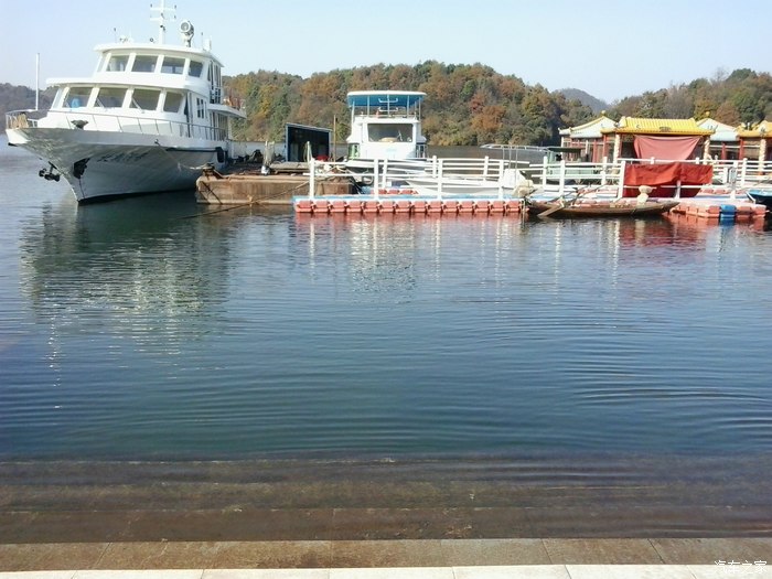 ↑庐山西海游船码头。别说水至清则无鱼,西海的鱼大的有几十斤重,味道鲜美,但价格昂贵