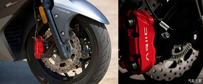 95公斤的整备质量,虽然达不到同级别最轻量化的定位,但通过观察我们可以发现,由于使用了前置双碟设计并配备了双侧的对四活塞卡钳,这样一来整备质量的增加也是合情合理的哈!谁叫人家配置这么高呢!