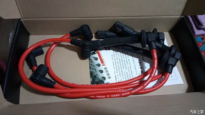 这里我把从网上学到的知识跟大家做一个分享。从原理上讲,缸线的作用是点火线圈把能量(也就是电压)传给火花塞,根据电学规则(即:各用电器的电压和其电阻成正比关系),如果缸线的电阻值过大或者出现漏电,就会导致缸线部分电压过大,从而传递到火花塞和发动机这一端的电压偏小,造成较大的电压损失。近代出产的一些中端以上的车型已经没有了缸线,缸线和点火线圈做到了一起,即点火线圈产生的电压不经过缸线直接传递到火花塞端,其目的就是尽可能的减少传递过程的电压损失。二蛋做为一个古董车还是有缸线的,而且原车的缸线电阻值达到几千欧姆,甚至有车友反映还有漏电的现象。说到这里,各位应该明白换缸线的目的以及要选用什么样的缸线,那就是绝缘性要好(防漏电)以及电阻小(减少电压损失)。再讲火花塞,它的作用是在规定的时间内使电极之间产生强火花,成为混合气燃烧的始点,形象点说,火花塞的好坏,是决定车子是否赢在了起跑线上。原车采用的镍基合金普通火花塞已越来越不适应大功率、高转速、大压缩比的现代发动机的需要。为了使火花塞具有更高的点火性能和使用寿命,现代车厂开始瞄准贵金属(铂、铱、钇等),将其用于电极并相应改进发火端的结构。因此,好的缸线和火花塞会改善发动机的动力输出,节省油耗。