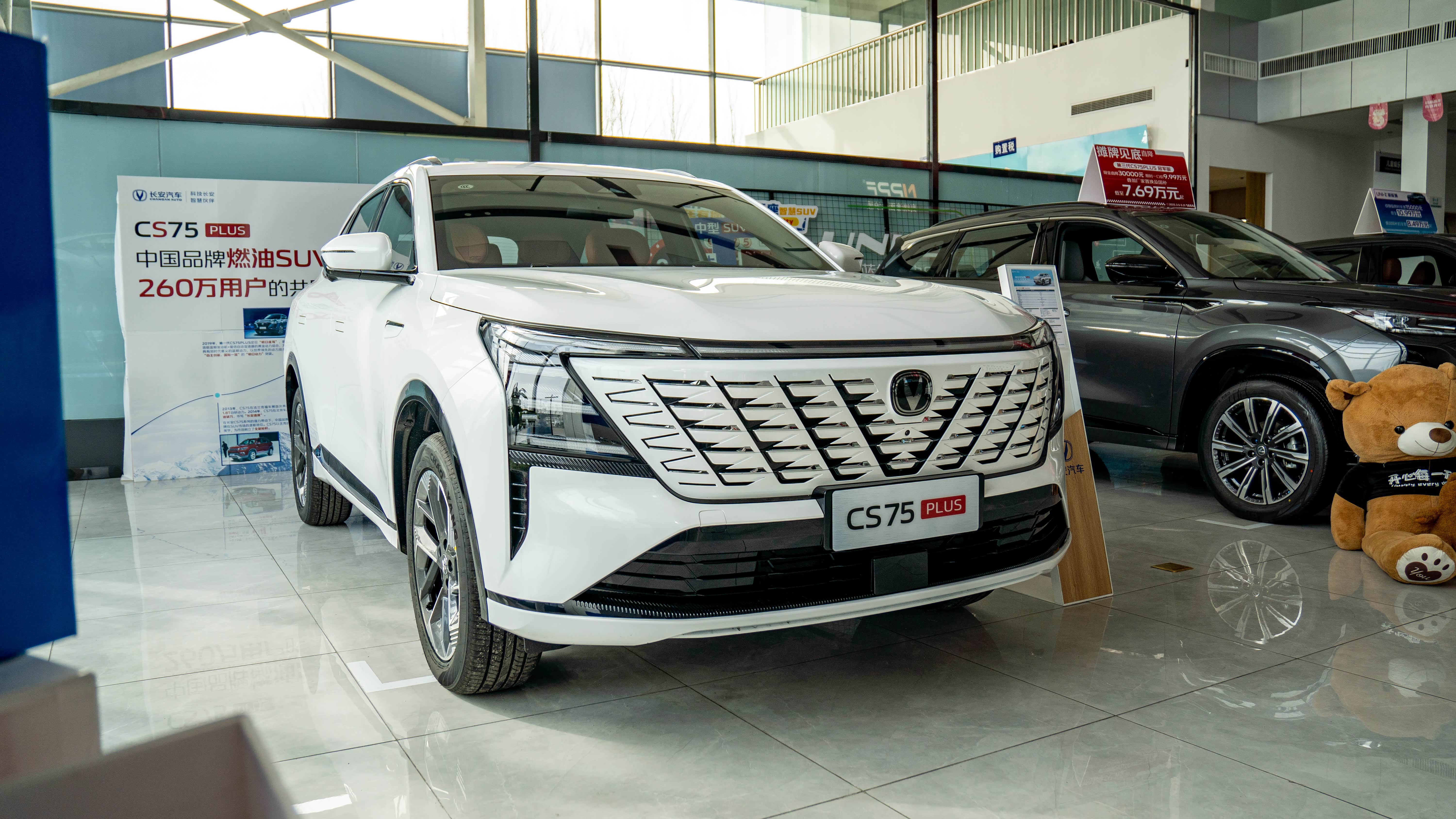 带媳妇去售后修老车时,展厅里那台第四代CS75PLUS直接让我们两口子走不动道了。销售说这是刚上市的新款,前脸无边界格栅确实比老款精神不少,贯穿式日行灯亮起来时,媳妇偷偷戳我:"这车看着比咱家那台老欧尚贵气多了啊"。