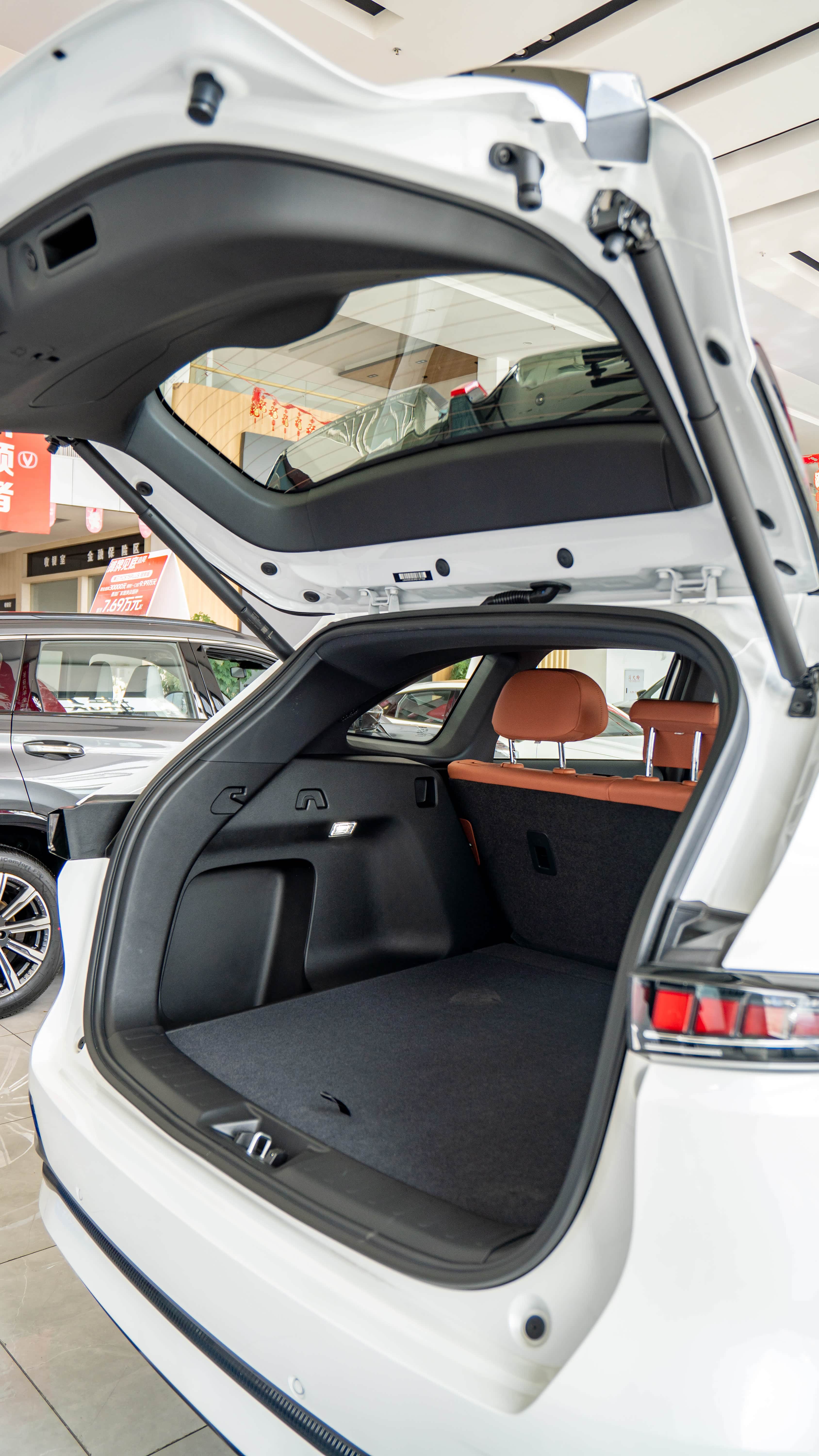 真正让我破防的是坐进车里的瞬间:全车能摸到的地方都是软包,销售演示语音控制时,一句"小安你好,打开座椅通风"直接让后背开始冒凉风——这功能在我们北方夏天同样是续命神器。后排地台纯平,媳妇试坐时直夸能轻松跷二郎腿,后备箱还是个下沉式的目测塞下折叠自行车后还有空余再放上孩子的推车包括一家人的行李,这空间对二胎家庭太有杀伤力了。