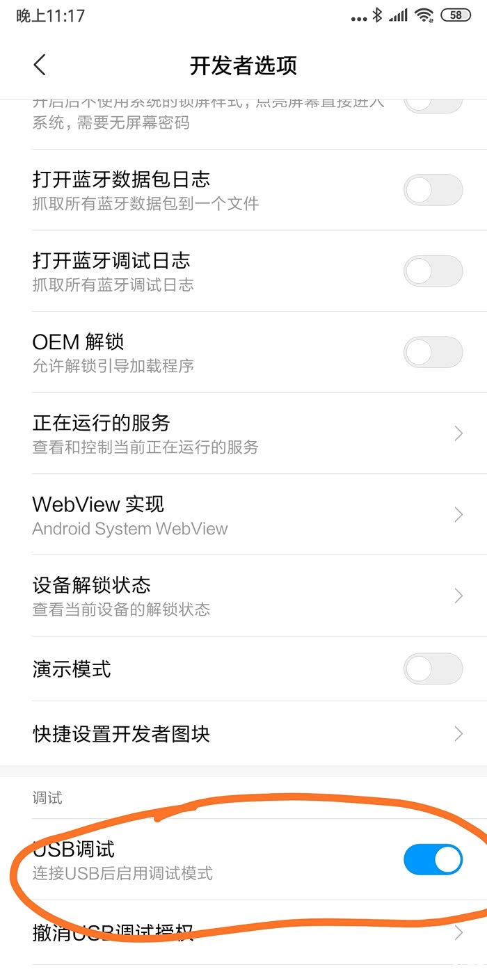 2.手机设置里->更多设置->开发者选项->点开开发者选项和 USB调试