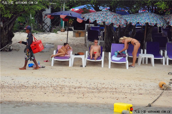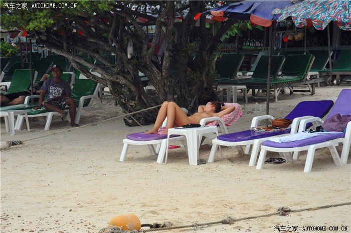 月光岛沙滩较长,沙质细腻,大都欧美游客在此休憩,岛上有免费的帆布躺椅,这样的躺椅租一个,200铢