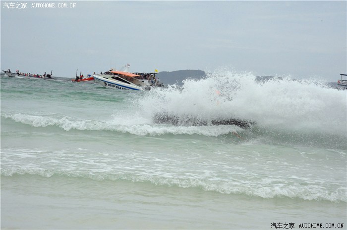 这哥们儿够孤独的,见大家玩得兴起,直接穿着内裤就来了,无奈风浪太大,半天船都无法靠拢