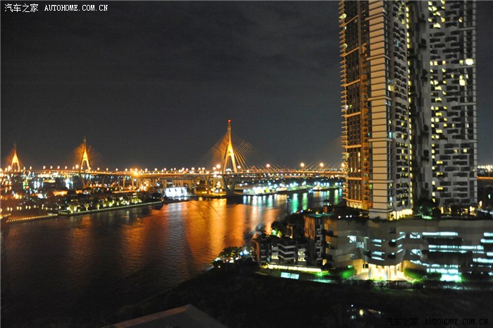 站在酒店的阳台上,欣赏曼谷、湄南河夜景
