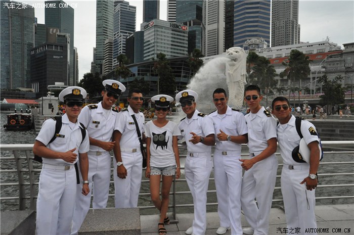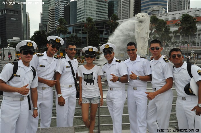 正好碰见一群水兵(哪个国家的都没来得及细看)也在这里合影,帅锅们还给女儿扣上了一顶军帽,超帅气