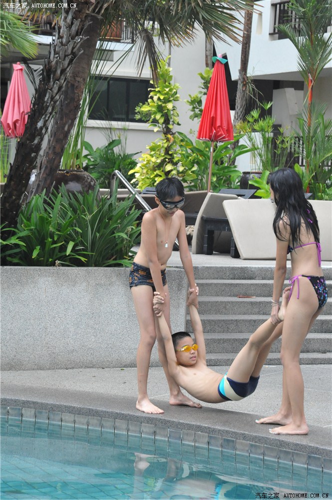 早早地起了床,孩子们已经在泳池里快乐地玩耍了