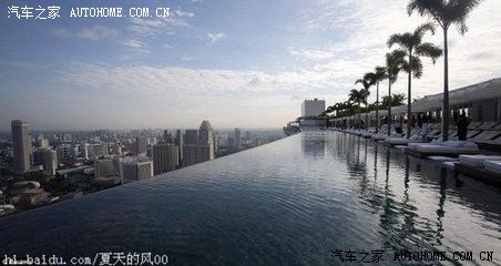 新加坡滨海湾金沙酒店号称当今世上最昂贵酒店于2010年6月23日的举行盛大开业庆典。当天,这个耗资40亿英镑打造、拥有室外泳池、观光平台、豪华赌场等高档设施的度假酒店正式对宾客开放,最令人叫绝的是,宾客们可以在游泳的同时,俯瞰新加坡的城市景观。世界上最昂贵的酒店这个室外泳池建在滨海湾金沙酒店55层高的塔楼顶层,是奥运会泳池长度的三倍,高度为650英尺(198米),是这一高度下世界上最大的室外泳池。